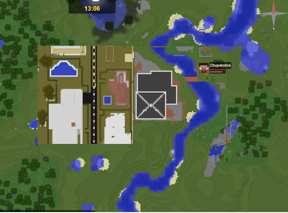 Дополнительно: Развернуть на 180 градусов (Входом на юг). Опустить на 3 блока ниже.
