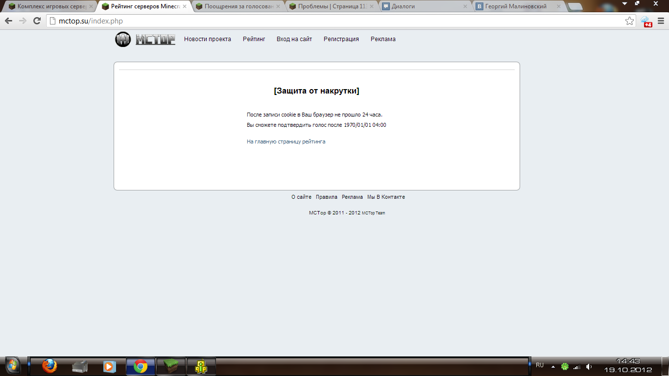 Мне выдает: оценить сервер, ввести имя...После всех этих процедур мне выбивает - "ваш голос учтен ранее, вы сможете голосовать не ранее чем через 24 часа"
