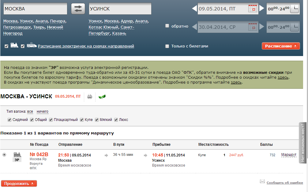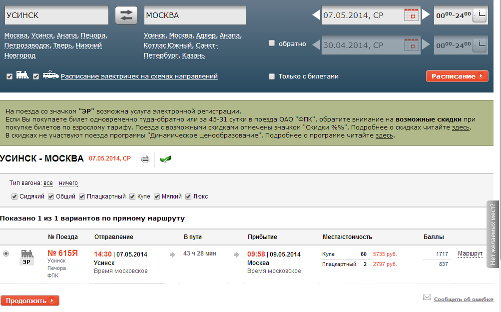 Смотрим цены с Усинска в Москву и обратно на 7-9 мая. Это так, для сравнения [smile] "Цены на 7-9 и 9-11 одинаковы)