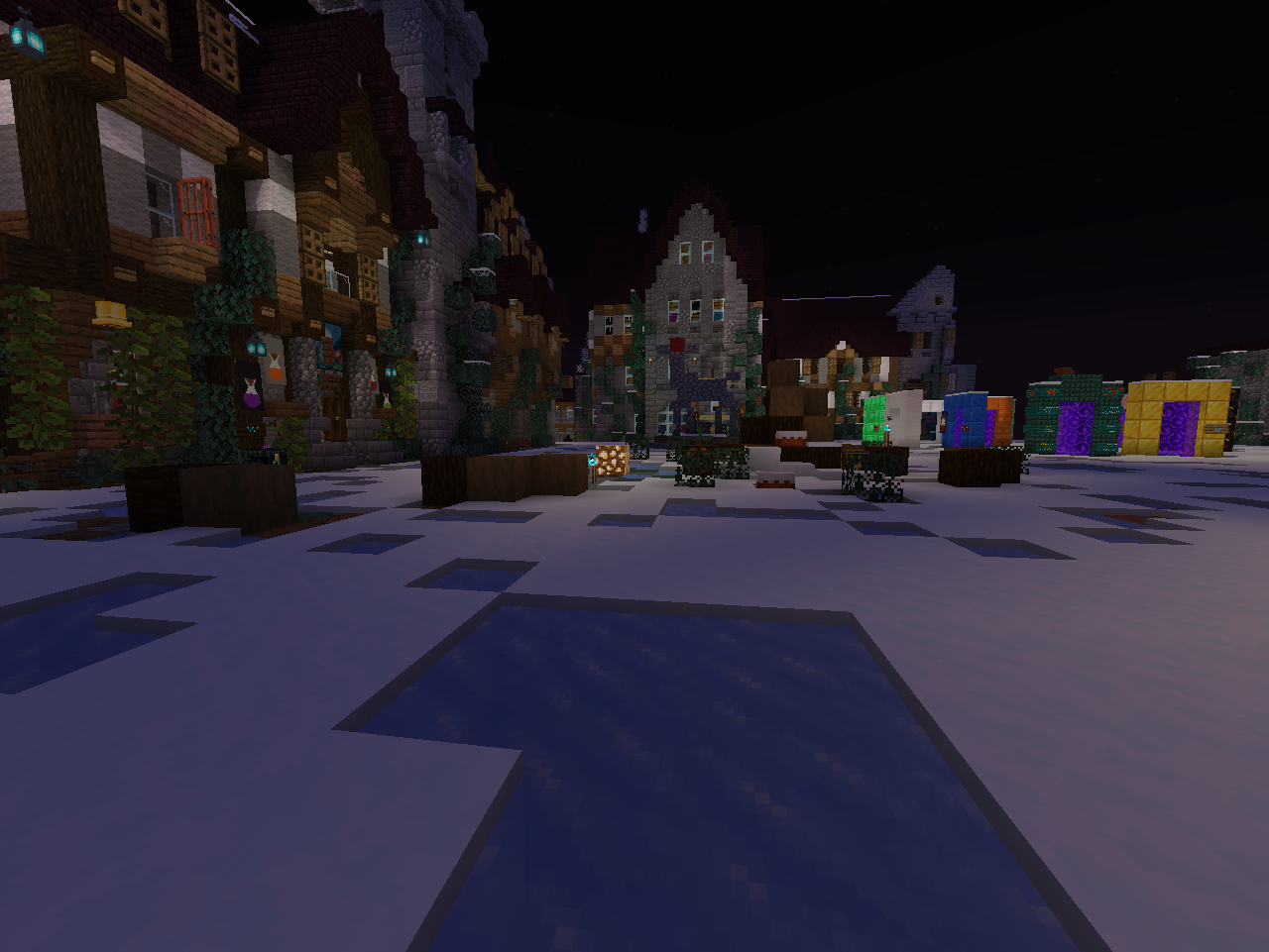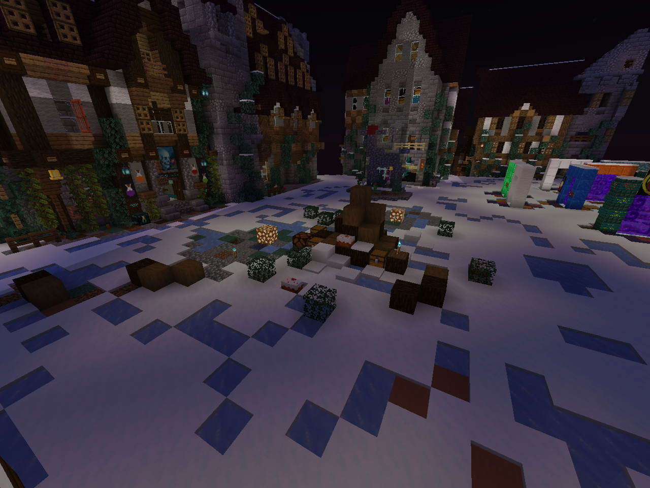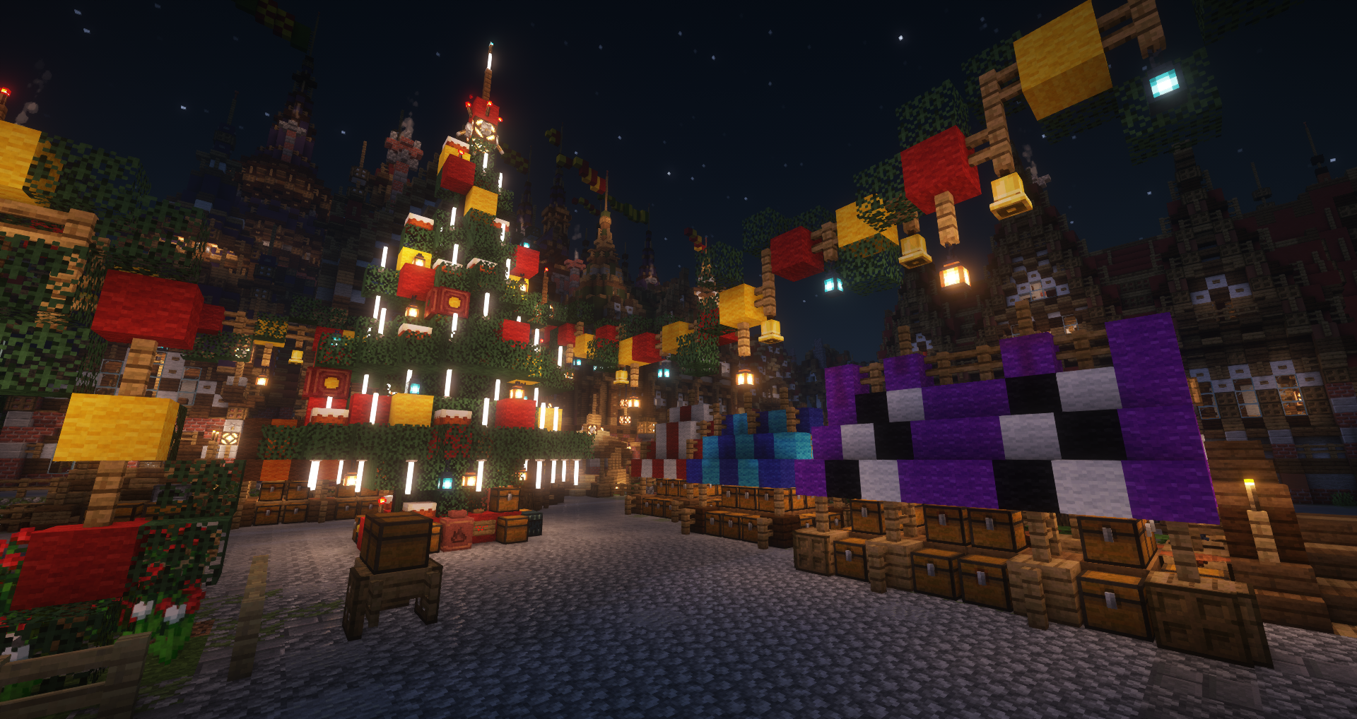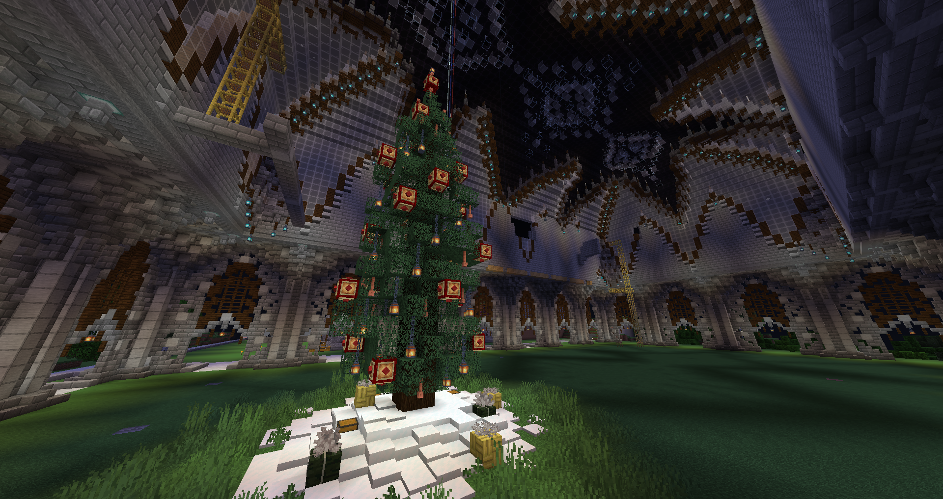 - Диаметр ёлки; минимум 7, максимум 17 блоков (с учетом игрушек), а постройка объектов под ёлкой (к примеру, олени) - не должны превышать радиус в 9 блоков от ствола ёлки. Помните: на спавне места не так много, постарайтесь сделать ёлку компактнее указанных максимальных размеров;