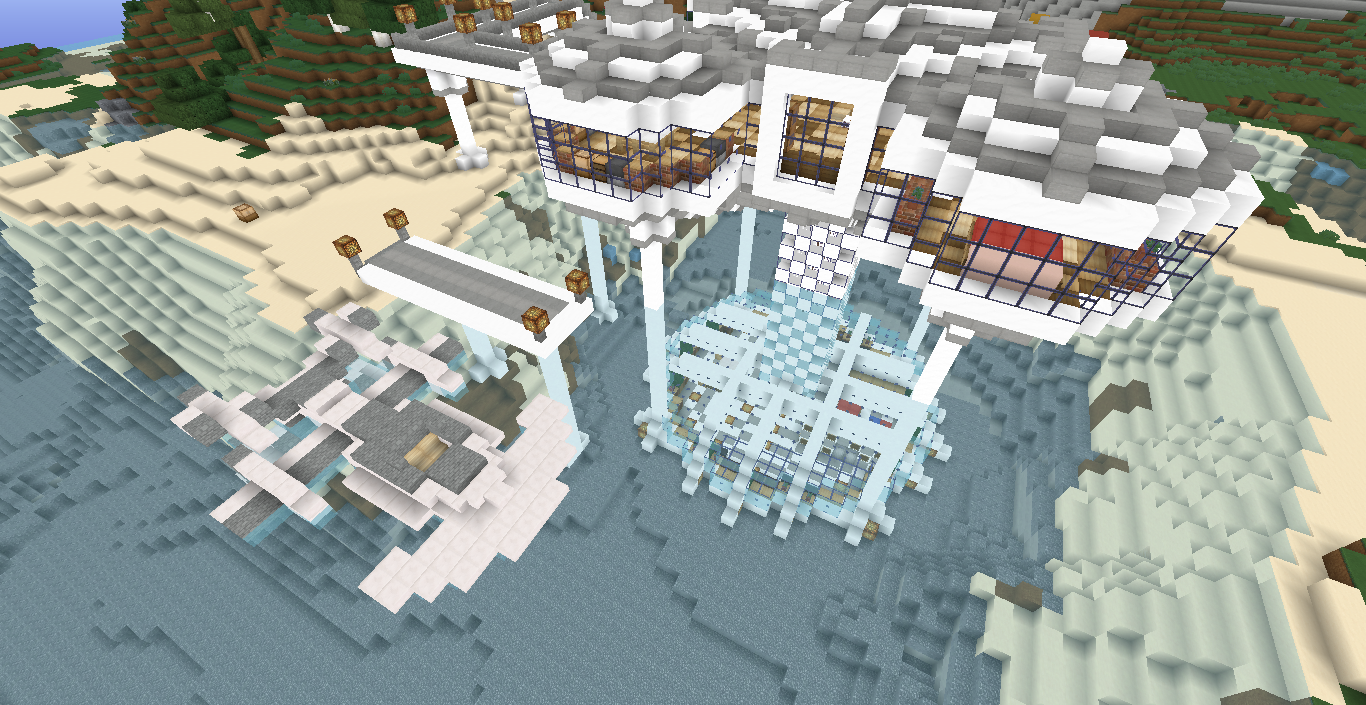 Описание: На этот раз перед вами небольшой дом в популярном ныне стиле модерн. Находится дом посреди живописного залива, где часто спавнятся всякая морская живность. К дому так же прилагается причал с небольшим планетарным флаером, на котором можно и по волнам покататься с ветерком и в голубую высь взмыть. Весь дом опирается на на опоры, а под самой толщей воды находится большая подводная комната, откуда открываются завораживающие виды. Там же находится основная спальня. Спойлер: Скриншоты Координаты: +2200 +6100. От первого южного портала бежать всего минут 10, но можно скоратить до 2 минут по аду. Координаты портала в аду - +212 69 +765. Цена: 60 000 ч. Для покупки введите команду /res market buy BFH Для переименования используйте команду /res rename BFH [new_name] P.S. Так же возможно стройка на заказ. Обращаться в ЛС на форуме или в игре.