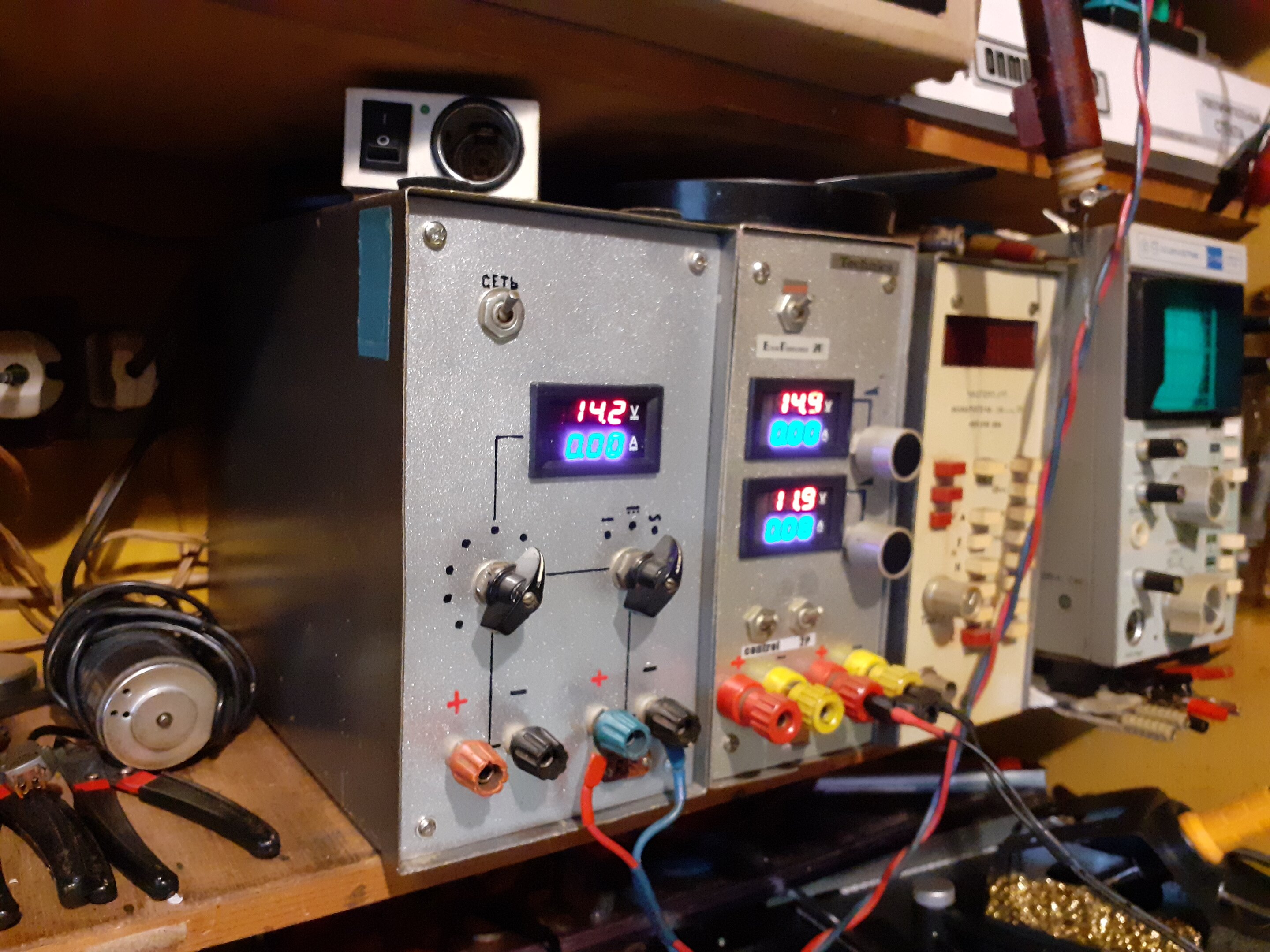 Новое поступление запчастей из Китая . Прислали цифровые вольтметры - и сразу пустил в дело . Заменил на блоке питания стрелочные приборы на цифровые ( читать показания удобнее да и пределы измерений не нужно переключать )