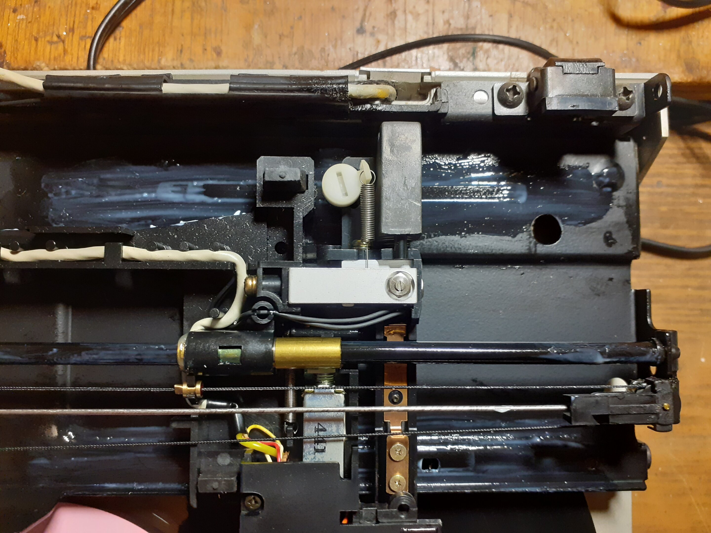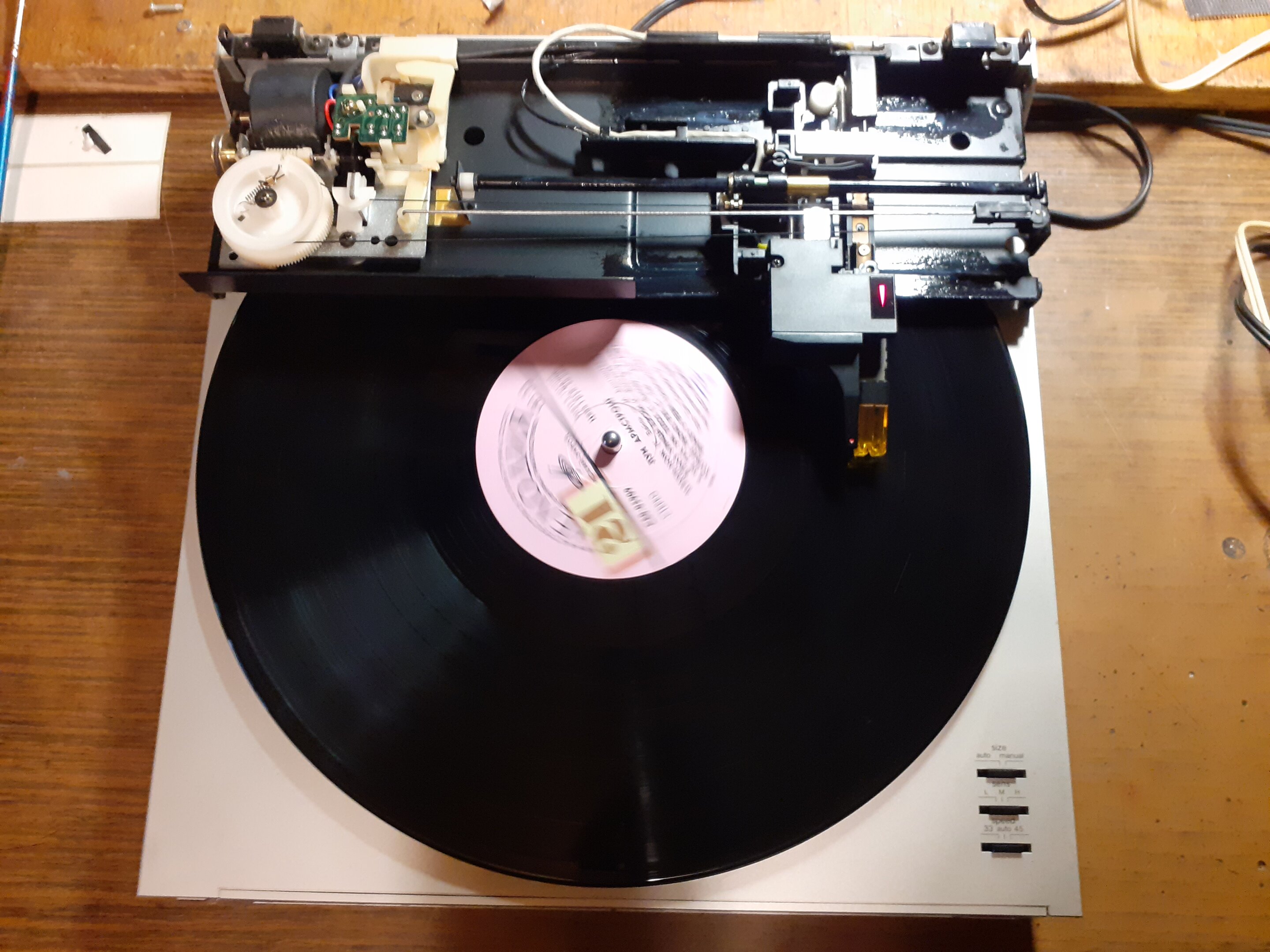На сегодня ремонт Проигрывателя пластинок Technics SL-Q6 EXCELLENT По прошествии энного кол-ва времени смазка тонарма приказала долго жить ! ) Ну это не так и страшно . Растворитель на тряпочку и лёгкими движениями и нету засохшей смазки . Смазка .. тефлон - силикон .. на кисточку и готово . Ну вот ещё беда - пассик привода тонарма уже тоже того - не гнётся ))) Замена на пассик от CD привода - благо их куча старых не рабочих . Проверка и сборка того что разобрал . Всё работает как по маслу .