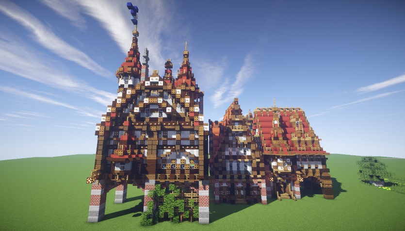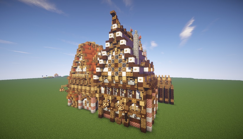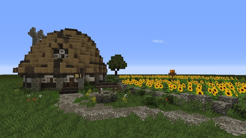 Небольшое развитие меровийской сельской тематики, слегка няшная. "Ферма подсолнухов". Общая мораль -- солома такой же материал как и остальные, с ней можно и нужно экперементировать. Подсолнухи же идеальное растение для декоративных полей. Там еще есть небольшой эксперимент с фруктовым деревом, но у нас на сервере не прокатит - рамки сопрут дураки. Детали и даунлоуд тут: http://www.planetminecraft.com/project/sunflower-farm-3283823/