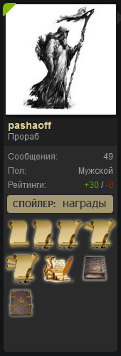 Так, таблицу мне стало делать лень, так набью. --- А) Выслуга лет/форумные достижения 3 месяца на проекте 6 месяцев 1 год 2 года 3 года Визуально это должны быть какие-то постепенно "улучшающиеся" штуки, от дерева и камня до алмаза. Например, я нашел вот такие щитки в показанном выше паке иконок. Это базовая прогрессия. В плане что 3 года срок немалый и его из приходящих с нами будут не столь многие. В теории можно добавить еще парочку (совсем какие вычурные), для супер-ветеранов, которые постепенно в будущем будут у нас кристаллизоваться. 500 постов на форуме 1000 1500 2000 3000 5000 Это ветка для постоянных клиентов форума и заядлых писак, поэтому прогрессия довольно жесткая. Но иначе не вижу особого смысла -- если начинать с мягких там 100-200-300 постов, то будет слишком легко и все сразу залепляться наградами. Визуальный ряд, видимо, какие-то канцелярские принадлежности. Книжки там, перья, свитки. +100 рейтинга 250 500 1000 1500 2000 3000 4000 Т.е. лайки. Дело, конечно, условное, но люди любят. Визуальный ряд предлагаю построить на сувенирах-приколах. Например, именная зажигалка Krippо (зажигать темы и чтобы у оппонентов пригорало). Или бутылек Антитроллина (не вестись). Т.е. предметы помогающие в эффективном общение в суровых условиях интернета : ) Ну если кто что придумает еще лучше и веселее, действуйте. B) Ивенты Тут, понятно, выдавать всякие мечики-топорики-пулялки-шлемики и прочую милую фигню на пвп ивенты. На приключенческие разные приключенческие товары (карты/факела), на строительные что-то вроде инструментов или тематических сувениров. Конкретные названия-описания-картинки уже делать под ивенты. Надпись на медальке будет "Победитель ивента Очень интересный ивент". Или там "3-е место в ивенте Адская фигня". Там на сотни всяких забав хватил пула айтемов (просто позырьте выше где я постил галереи). С) Мега-заслуги Тут раздел для различных заслуг на ниве блага для проекта. Я бы выделил несколько базовых идей. Техническая помощь проекту Человек кодил, прогил чето-то там еще мутил в умных материаях технических глубин проекта. Для нас это дело важное и нужное. Надо отмечать. Креативная помощь проекту Человек рисовал, снимал, что-то там делал другое творческое и сложное на пользу проекту и принес этим реальный выхлоп и пользу. Понятно, что говнолетсплеи про то как 5 челов с матерками потолкались на сплифе не в счет. За написание гайдов Понятно, что не за 2 строчки о том как скрафтить верстак, а за долговременную и серьезную работу. Насчет картинки надо подумать. За стройку на благо проекта Тут речь идет о стройке технической, не для себя. Например, игрок строил спаун или другие массивные и важные инфраструктурные вещи. Можно кирпичик. Но можно и что-то наряднее. Орден почетной Кирки Высшая награда ММ, за невероятные и многочисленные заслуги, когда человек делал так много всего важного и нужного, что прямо совсем молодец. Например, ее можно вручить Леголасу. ----- Отдельную награду для донатеров (назвать их только как-то шикарнее, Наппс вот называет "меценатами"), еще кто умом богат на синонимы посладостнее? В инглише вот есть саппортер и бейкер. Им давать какой-нибудь красивый камень. Рубин, например. Хотя можно и какой-то другой камень красявее. Какой-нибудь чудной минерал из этих. Хоть бы алмаз. Вообщем предлагайте тоже там c иконками-названиями.