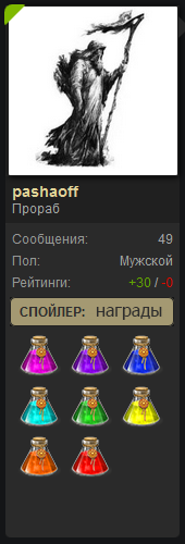 Наконец придумал награды за рейтинг. Эликсиры - типа хороший рейтинг, как бальзам на душу)). Расположены по возрастанию от холодных цветов к теплым.