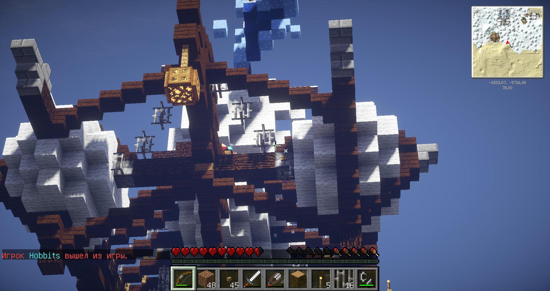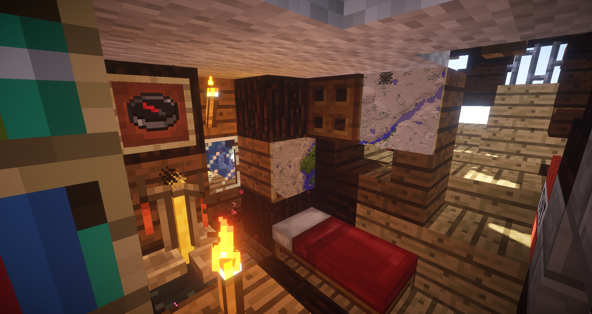 Наверное, кого-то заинтересует вопрос: А как попасть на борт корабля? Очень просто - берем лук, стрелы и практикуемся в стрельбе: 2015-07-17_15.14.18.png попадете в кнопочку - раздатчик выльет воду, по которой спокойно можно забраться) На корабле имеется оборудованная маленькая каюта: 2015-07-17_15.58.53.png