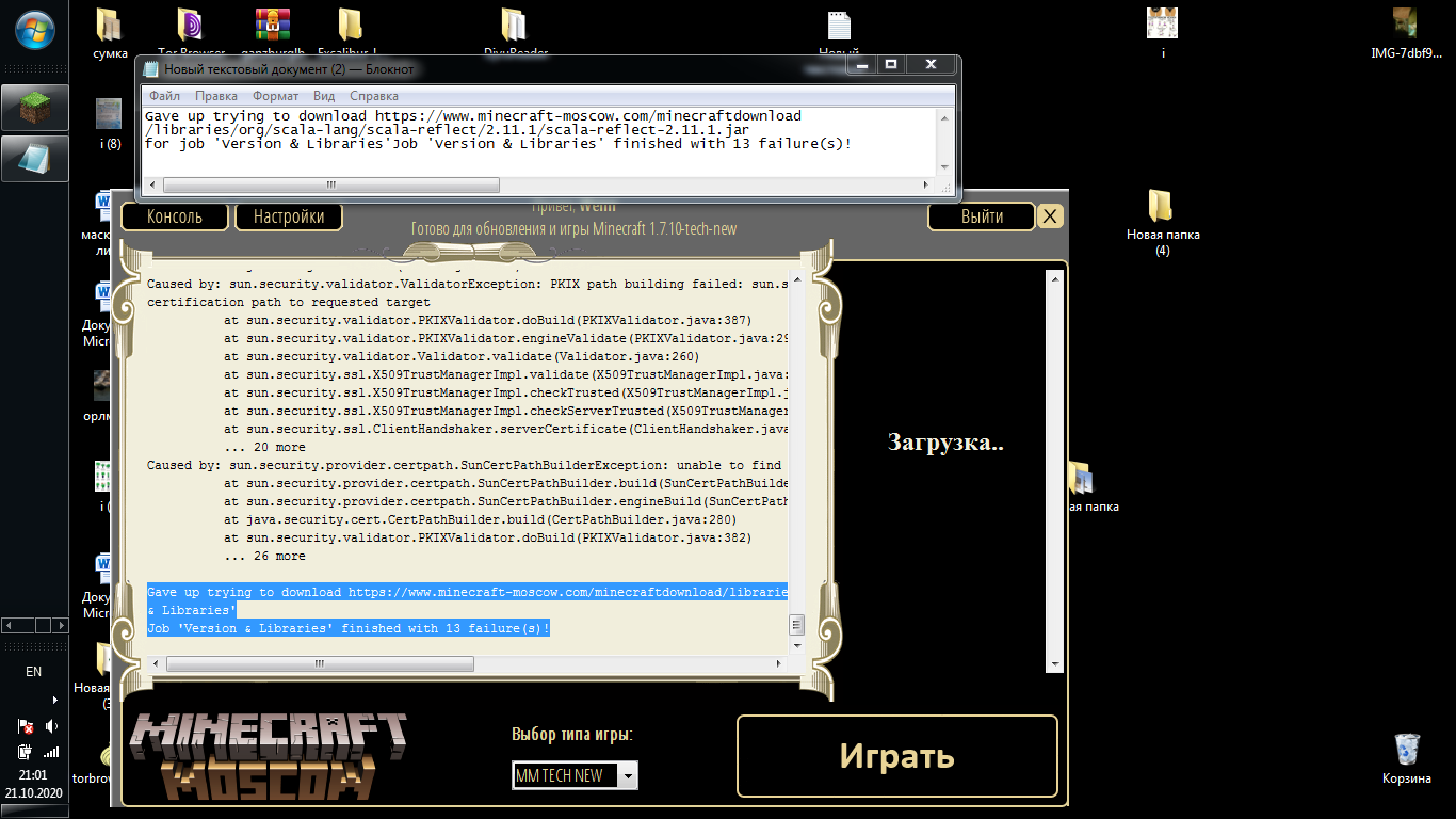 В лаунчере не запускаются: - классик; - гречка; - тех. А TFC запускается. В воскресенье всё работало. Переустановил java - работает всё.