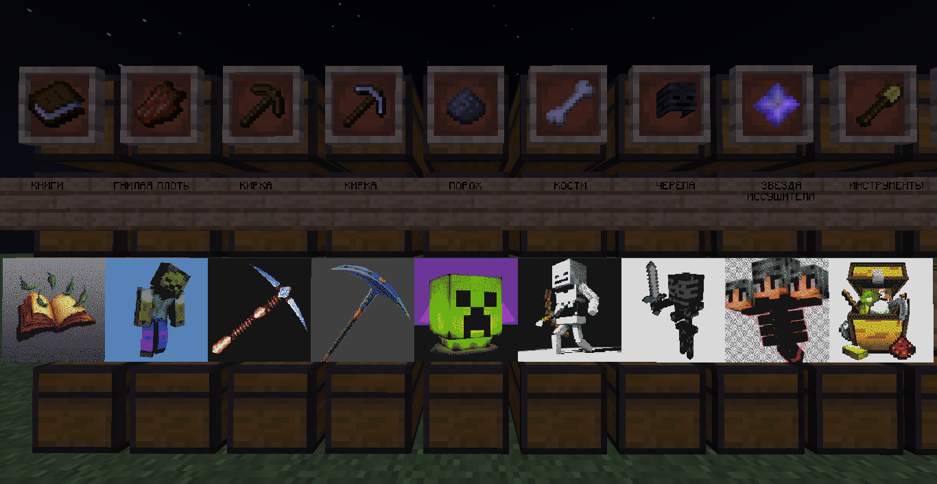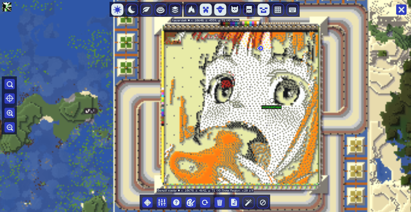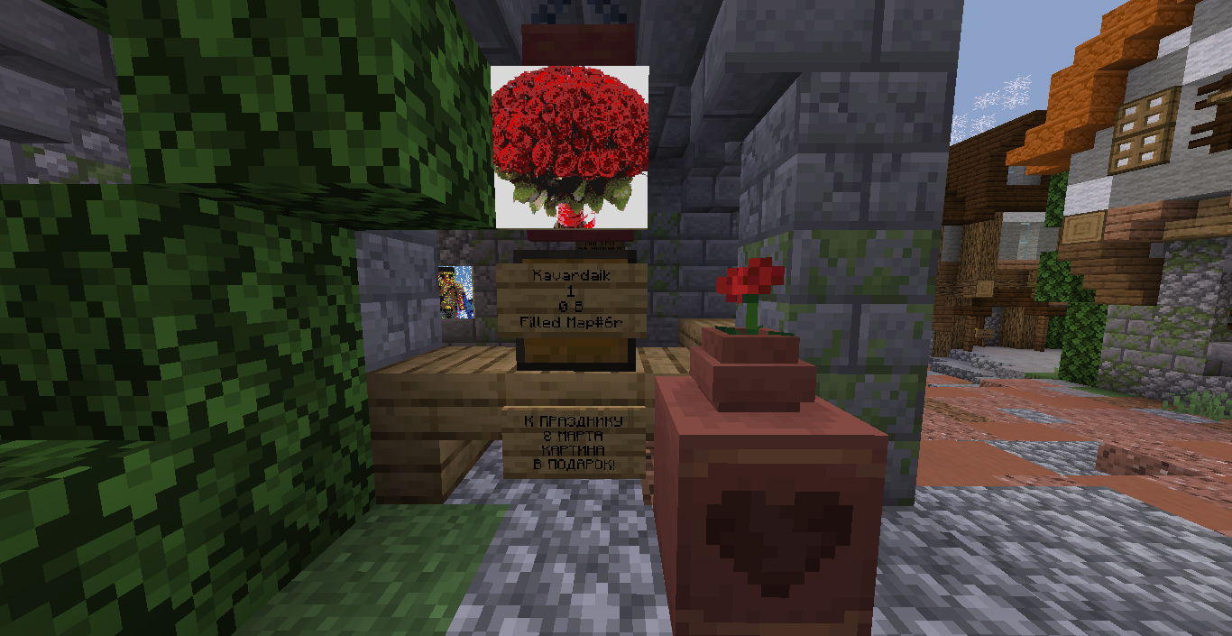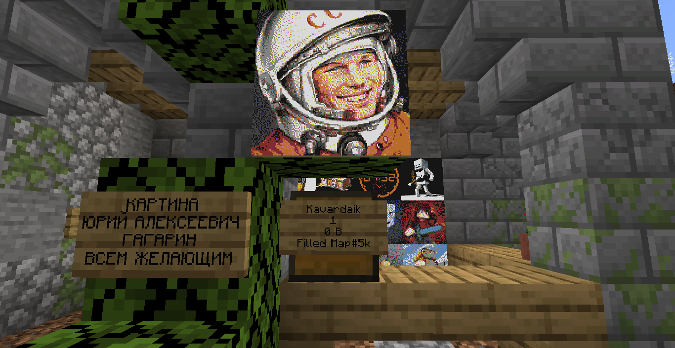 Одиночные карты с изображениями, которые смогут разнообразить склад каждого игрока. В планах нарисовать блоки, броню, оружие, инструменты, мобов или лут с них. По изображению должно быть интуитивно понятно содержимое сундука. Небольшая часть от этого проекта уже выложена на сервере, в фотолаборатории на спавне буду пополнять коллекцию. Картины будут доступны всем желающим, пока не решу вопрос с честшопом, обращайтесь в игре ко мне или к scolsashaya.