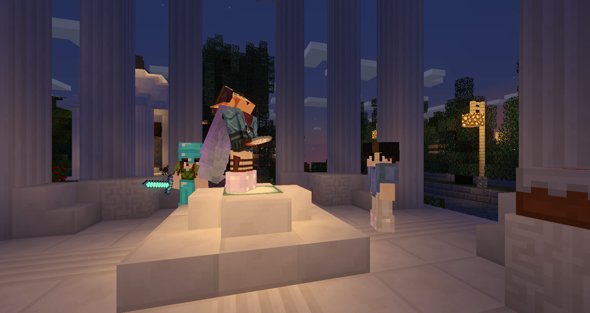 Сегодня мы все таки решились отправить в Спавноград гонца с новостями. Меньше недели с официального основания города, а мы уже перенасыщены событиями. Но начнем, собственно, с основания. Орден вынашивал идею построить город довольно давно, с первых слухов о перерождении мира. Длительное время мы выбирали место, подходящее для осуществление планов, но новая расширенная карта моментально дала ответ на этот вопрос. Наш город раскинулся на побережье крупного озера почти строго на востоке от Спавнограда, в живописном уголке в окружении великолепных гор, и девственного елового леса. Город начал быстро разрастаться, стараниями Стражей мы быстро дособирали необходимые ресурсы и воздвигли первые здания, трактир, порядком изменившийся и прибавивший в количестве комнат со своей прошлой версии, а также Главную площадь на которой торжественно было посажено белое дерево Амарант, привезенное нами из Далеких Земель и давшее городу имя.Очевидно деревцу нравится в новом месте и оно активно растет, с каждым днем вырастая все больше. За символическую плату маги Спавнограда позволили нам установить портал, напрямую связующий столицу и нашу живописную глубинку, и теперь путники могут без трудностей с преодолением расстояний посещать Амарант. К нашему удивлению, простота перемещения к нам моментально привлекла к нашему озеру огромное количество рыбаков со всей округи. По их словам, здесь великолепный клев и многих уже посетила удача выловить в наших водах редчайшую книгу, за которой, воистину, охотятся практически все жители мира. Один из Стражей настоял все-таки упомянуть, что отнюдь не все путники оказались доброжелательны к нам, некоторые из них тут же попытались увести наших лошадок, которых мы используем для быстрого перемещения по городу и доставки ресурсов к стройкам, что, увы, вынуждает меня пересмотреть идею об использовании лошадей нашими гостями,для удобного перемещения. Поведение иных путников и вовсе меня изумило, создалось впечатление, что они прошли через наш портал только для того, чтобы попытаться утопиться в озере, распугивая рыбу и мешая нашим гостям. Воистину, некоторые жители мира очень странные... Также на Главной площади мы открыли лавки торговцев, стекшихся в город со всех земель и привнесших свой стиль в каждое строение на торговой площади. Мы постарались собрать здесь наиболее ходовые товары для строителей и искателей приключений по достаточно демократическим ценам. Кроме того, на сей раз мы смогли обойтись даже без огромной надписи для инопланетян поперек площади. Кроме того, в процессе возведения города к Страже Рассвета наконец присоединился наш хороший знакомый Стилворк. Из-за технических неполадок церемонию посвящения пришлось провести не традиционно на рассвете, а посреди дня, закончив к закату. Несмотря на это, клятва была дана, жертвенный тортик - поставлен на постамент, а в безоблачное небо с радостным жужжанием взвились фейерверки. А на Площади... правильнее сказать, наверное, в Дворике Посольств открылось первое посольство, принадлежащее нашим добрым друзьям - Ордену Феникса. Состоялось торжественное перерезание красного коври... то есть, красной ленточки у входа магистром Эволюшином. Стража Рассвета искренне надеется, что в будущем с Орденом Феникса нас буду связывать только добрые дружеские отн