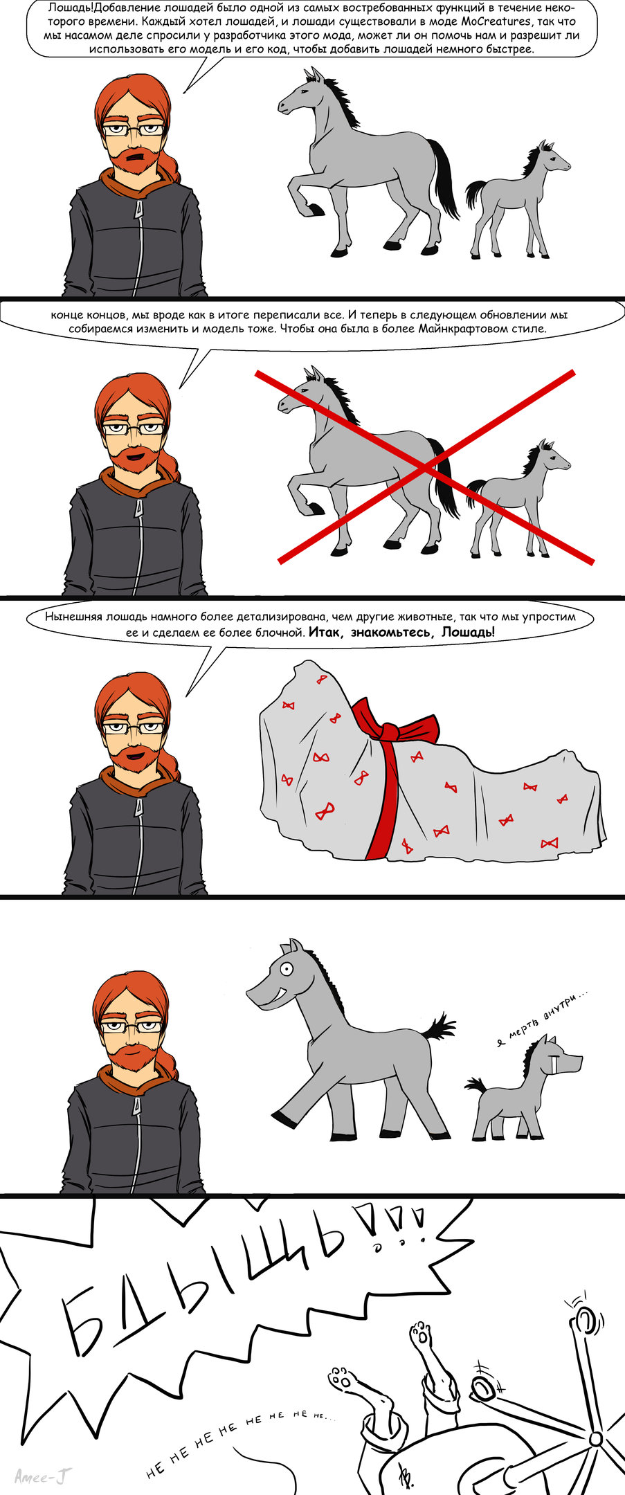 Данная неделя была крайне насыщена событиями. Преддверие праздников, Вторые Амарантовые скачки и переезд. А еще тут есть рассказик о будущей 1.13 версии. Все приложеные скриншоты предоставлены Ангваром и Пашаоффом Одним прекрасным утром я покинула свой особняк, вышла на крыльцо и обнаружила, что Амарант окутал белым покрывалом снежок. Удивительно его было увидеть в наших вечно теплых землях. Снег накрыл и улицы и еще зеленые ивы и Белое Дерево, поверхность озера частично покрылась льдом, замерзли фонтаны. Первым образовавшемуся снежному праздничному настроению обрадовался Аргокон, моментально начавший украшать свой дом к празднику и даже решив прорубить дыру в полу второго этажа своего дома ради елки. Мы быстро подхватили его настроение, и закипела работа: мы старательно начали украшать дома и белоствольный Амарант вместо елки, закатали вокруг него каток и вскоре город обрел поистине праздничный вид. В субботу отгремели Вторые Амарантовые скачки, к которым мы готовились долго и со всем упорством, очень сильно волновались. Не сказать, что все прошло прямо гладко и как задумано, нас задело и вопиющее ЧП, выявив несколько проблем механики самого сервера, с которыми придется считаться, а так же некоторые детали, из-за которых придется внести ряд изменений в правила гонок. Ничего критичного, думаю, это не страшно, я уже писала вроде бы, что деятельность для нас принципиально новая, и многое нужно шлифовать, как говорится, на полях. Участников на вторые скачки собралось куда больше чем на первые. Виноват ли в этом баснословный приз или просто заинтересованность жителями Кубомирья в новых способах развлечь себя, но в игроках на ипподроме недостатка не было. На сей раз трасса игрокам предстояла посложнее, я вкладывала в нее весь садистский потенциал (правда меня немного осадили, и вложился он не весь). Барьеры, водные и ледяные преграды, мы даже яму со слизью выкопали по такому случаю. Всадники выстроились на стартовые позиции, кони нетерпеливо закусывали удила и перебирали ногами, отмашка, ворота открылись и гонка началась. Соревнования были напряженные. Фавориты шли к финишу буквально ноздря в ноздрю, стремясь прорваться в финальный тур, к возможности получить заветный приз и звание чемпиона. По итогам трех кругов за место чемпиона боролись чемпион прошлых скачек - Дисиджи, внезапная темная лошадка Бильбо Бегинс и посетивший нас житель еще не канувшего в лету Литтлстоуна - индеец Аедефикс (Эд). Меровийский длинноухий скакун Випон, к моему большому сожалению, в финал не вышел. Финальный забег, на трибунах не смолкал гвалт из имен участников, страсти накалялись с каждой минутой… Финиш и победителем становится Бильбо Бегинс из Осгилиата!Второе место занял Дисиджи, третье Эд. После состоялось вручение призов победителям, как этих скачек, так и предыдущих, в тени мемориала посвященного Амарантским лошадям со всеми почестями. Хочется сказать отдельное спасибо за спонсирование соревнований королеву Эйрин (Киперд), Джона, Кими и Блэка (ака Птицу), Пашаоффа за активную помощь при нашем внезапном недостатке рук и особенно Белке, приложившему немало усилий чтобы быстро устранить образовавшееся ЧП, а так же за возможность подарить чемпионам уникальные награды. О лошадях в 1.13 (автор: Китори) Внезапно спустившиеся с гор холода застали Страже