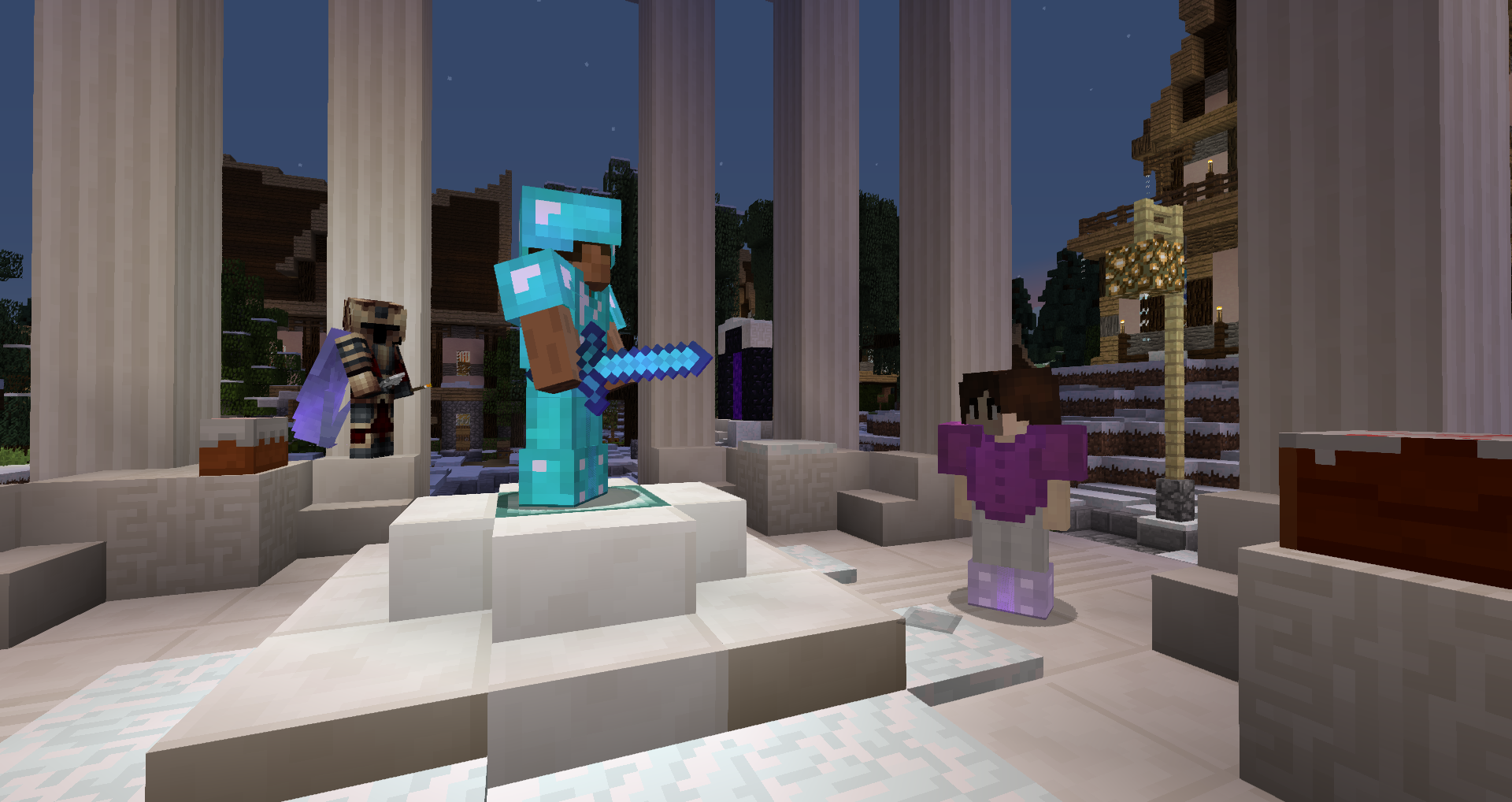 Речь сегодня пойдет о предновогодней суматохе и о перестройках в центре Амаранта. Вот и приближается конец очередного года и в Кубомирье уже вовсю витает праздничное настроение. Ставятся елки, проводится традиционный конкурс для украшения Спавнограда, а жители потихоньку расслабляются, предвкушая грядущие праздничные дни. Не обошло волшебство Нового Года и Амарант. Вот уже второй раз мы с изумлением наблюдаем как в самом сердце города неожиданно холодает и снег покрывает улицы, а часть озера покрывается корочкой льда. То ли само Неувядающее Дерево влияет таинственным волшебством на погоду, то ли это у Хранителя такие шутки, но в любом случае Амарант преображается несказанно. В это волшебное время и мы не сидим сложа руки, а наряжаем здания украшениями. В этом году мы решили все таки высадить елку. Конечно, она у нас не будет располагаться в центре площади как оно обычно делается, но зато она нашла свой уголок чтобы оставаться на этом месте и летом, а зимой продеваться в свой сверкающий наряд. Но конец года ознаменовался у нас не только праздничным снежком. Спустя долгие раздумья я все таки приняла решение о перестройке Торговой и Портальной площадей и объединении их в одну. набережная была несколько расширена, лавки переставлены и после долгих споров мы решили им оставить тот пестрый же дизайн как и был. Я хотела перестроить их под стиль остальных зданий, но столкнулась с жесткой критикой и что покупателям так удобно... В общем лавки только местоположение немного поменяли, ввиду того что полоски с елками между площадями больше нет. Ну и как вы могли заметить, городские порталы тоже несколько поменяли свое местоположение. Мы были вынуждены отказаться от прежних ротонд потому что подозреваем что именно они мешали адекватной работе порталов. Так что рамки обрели новый дизайн и их еще предстоит тестировать. Ну и еще у нас новое пополнение клана на одного человека. Приветствуем Хальдара - Нового Стража Ордена! PS: В новогодние праздники запланирован ряд мероприятий в том числе: ЗИМНИЕ СВИНЯЧЬИ СКАЧКИ!!! Трасса на выживание с ценными призами, дата и условия будут позднее в объявлениях на сервере и в теме города. Эрлесса города Амарант, коммандер Стражи Рассвета Ами-Джи