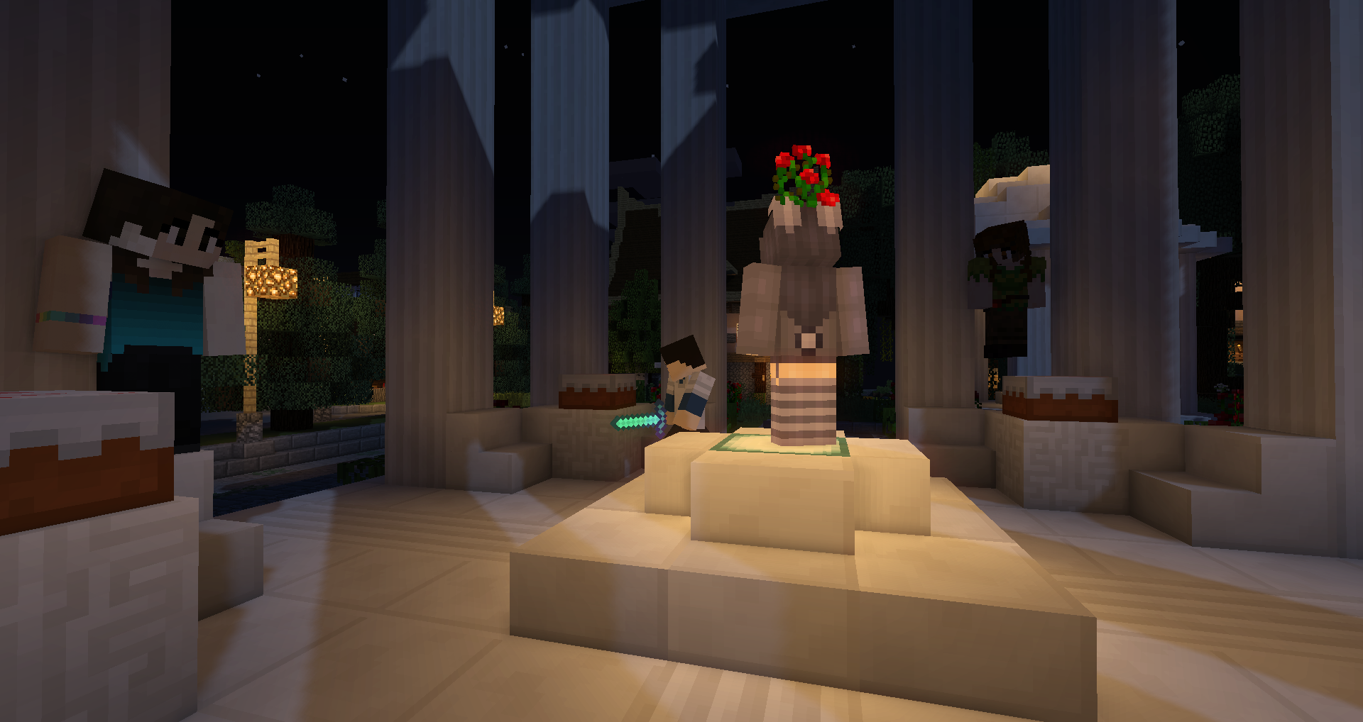 Этот выпуск особенный потому что у него неожиданно целых три автора. Это сборник рассказав в основном на тему события, произошедшего с нами за последнюю неделю и о котором слышал весь сервер. Мы не станем приписывать имен каждому отрывку, дабы никого не обижать, но не удивляйтесь, что они довольно сильно различаются по стилю. :3 И прежде чем мы начнем я хочу сообщить что в наших рядах опять пополнение. AnyTany прошла свой испытательный срок и успешно была принята в клан со всеми церемониями и почестями. За заслуги перед кланом и кучу сокровищ принесенных в хранилище званием почетного мужика награждается Стилворк Х) Похлопаем. Дерево Амарант очень сильно подросло и теперь мы ожидаем когда оно зацветет. :3 А еще мы, наконец-то, начали один крупный проект, но расскажем о нем в следующим выпуске. Теперь к главному. Данные рассказы не были одобрены ни светлыми, ни темными, они не пытаются кого-то оскорбить, унизить или спровоцировать, их рекомендуется расценивать исключительно как наше коллективное творчество, а наши игровые альтер-эго как персонажей. Авторы оставляют за собой право интерпретировать данные события с точки зрения собственного восприятия и в угоду ролеплею которым мы и занимались. Некоторые диалоги могут быть неточными ввиду того, что точных формулировок мы можем не помнить. Мы же не слоны. Мечта Пристань казалась алой в последних лучах уходящего спать солнышка. Остывающая вода волнами набегала на деревянные столбики, лаская слух нежным шипением, поднимала и опускала небольшую лодку, точно грудь огромного задремашего животного. В лодке, согнувшись, сидела одинокая фигурка, не спуская светлых сиреневых глаз с поплавка, остававшегося почти недвижным, а легкий ветерок осторожно гладил ее по белым волосам. В прежние времена, задолго до основания города, эрлесса любила проводить время в одиночестве, с удочкой в руках, придаваться раздумьям о вечном, под шум волн и шелест листвы. Ныне же, местные маги вдруг решили заколдовать рыбу, так что о спокойствии теперь почти не могло идти речи. Рыба то вдруг яростно хваталась за наживку, то вдруг куда-то исчезала, и в итоге, на поиски места уходило куда больше времени, чем на саму рыбалку. Однако, даже в таких условиях Эрлесса не унывала и упрямо ловила свои крохи спокойствия вдали от шумных людей, неотложных дел и непрекращающихся строек. Вот уже несколько недель Стражи вплотную занимались одним из самых крупных проектов – ипподромом, в котором в будущем надеялись проводить скачки на радость жителям кубомирья. Дело продвигалось медленно, просто потому что части строения еще не хватало расчетов для правильного размещения на местности. Все таки вписывать здания, по возможности минимально меняя ландшафт, оказалось не такой и простой задачей, но общими усилиями, да с помощью Древнего Бога строительство продвигалось вперед, благо никаких сюрпризов, вроде нашествия Скверны, судьба жителям Амаранта более не подкидывала. - Джи! Она словно не сразу услышала зов и неохотно выбралась из укрывших ее пеленой мыслей, оторвалась, наконец, от созерцания поплавка и подняла голову, взглянув на стоящую на пристани стройную девушку в зеленоватой одежде, привлекавшую внимание маханием какого-то листочка, который она сжимала в руке. С тяжелым вздохом Джи смотала удочку и налегла на весла, правя плоскодон