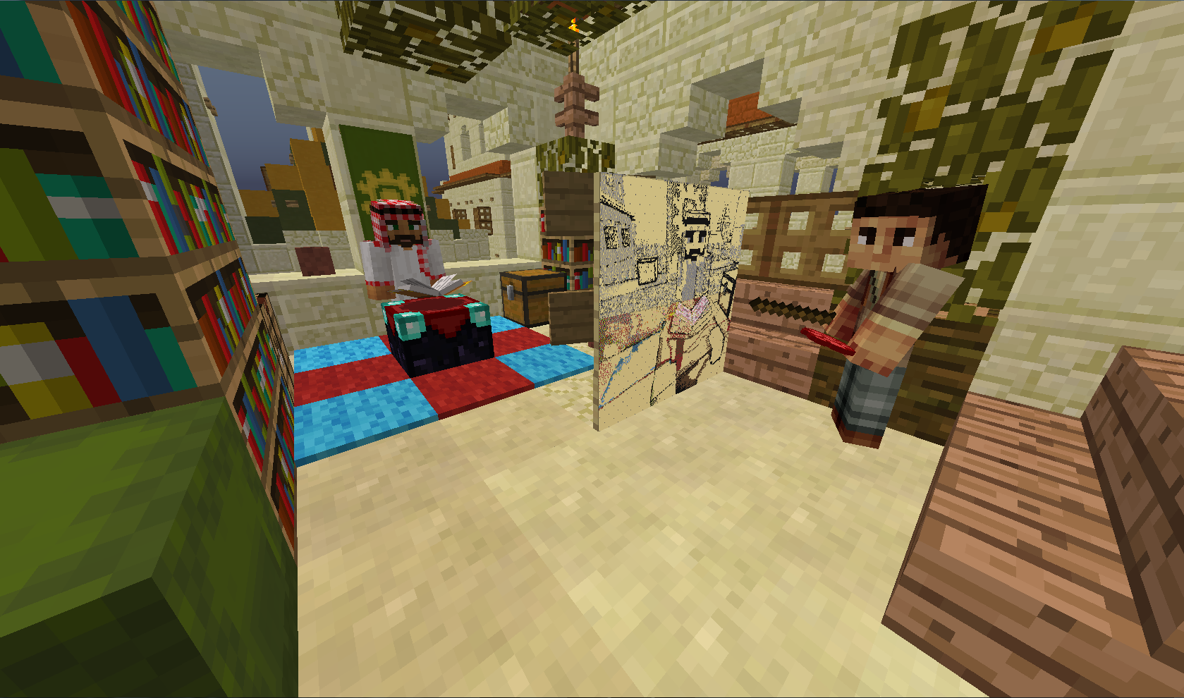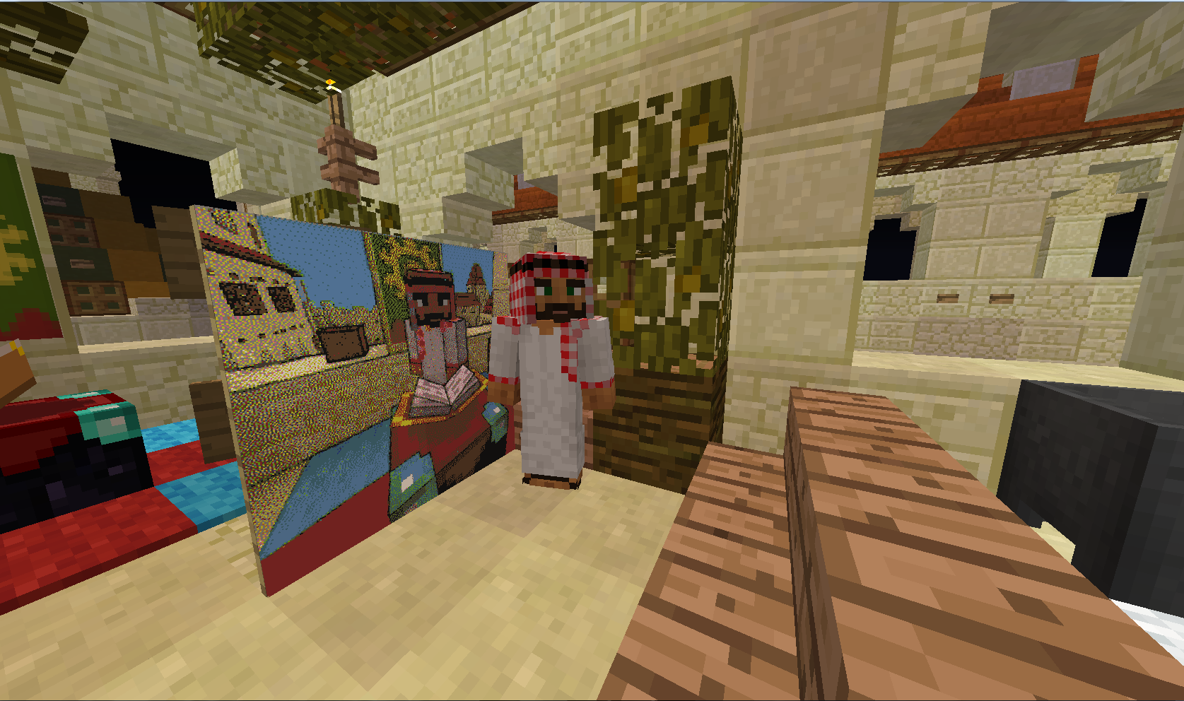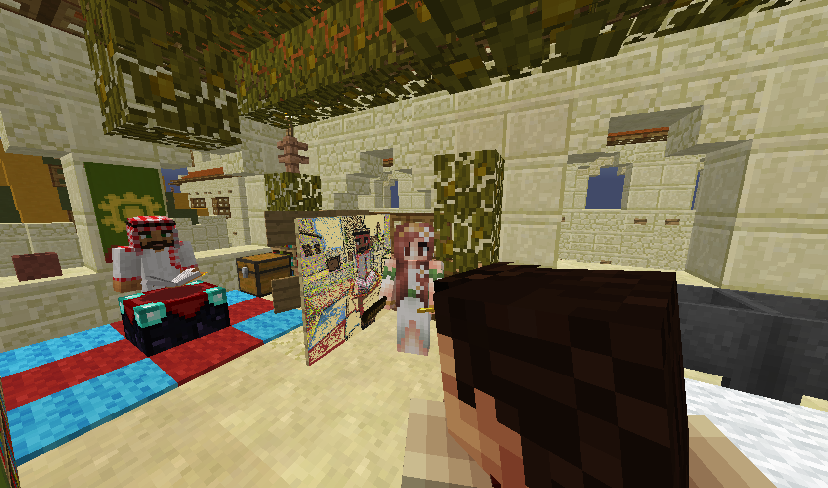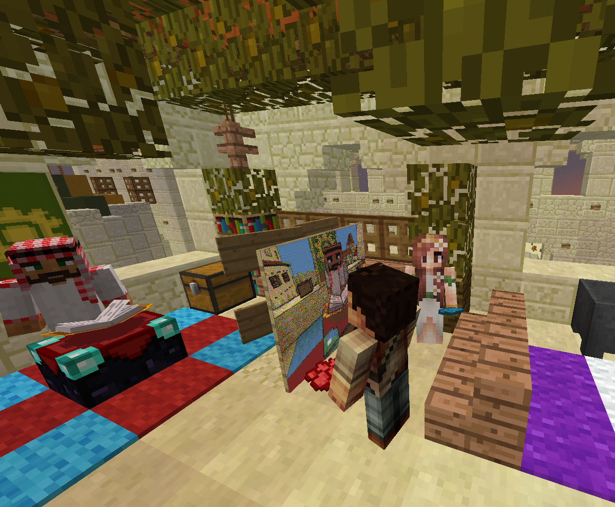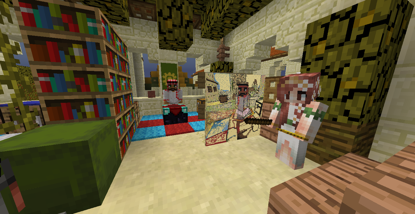 Огромное спасибо Великому Султану за тёплую встречу и радушный приём! Мы удостоились чести быть приглашены в султанат, где Султан лично провёл экскурсию по городу и даже в своём Великодушии выделил нам дом невдалеке от собственных покоев... Всё, что мы могли предложить в ответ - это свой скромный талант в создании портрета Великого Султана.... Процесс создания картины получился длительный, но весьма забавный в связи с тем, что Царственная Особа всё время пыталась заглянуть на мольберт в ходе написания собственного портрета и нам по-очереди приходилось упрашивать Великого Султана вернуться для позирования в исходную точку. Впрочем, вы и сами можете в этом убедиться: После вручения полотна Султан провел нас на открытие новой мечети, которая впечатлила нас высотой и убранством: это поистине высочайшее здание в городе, с крыши которого открывается восхитительный вид на весь Султанат... И только уже глубокой ночью мы разошлись по покоям.... Сил хватило чтобы лишь повесить броню у входа на стойках и завалиться спать. Завтра будет новый день и новые впечатления, чего всем и желаю.....