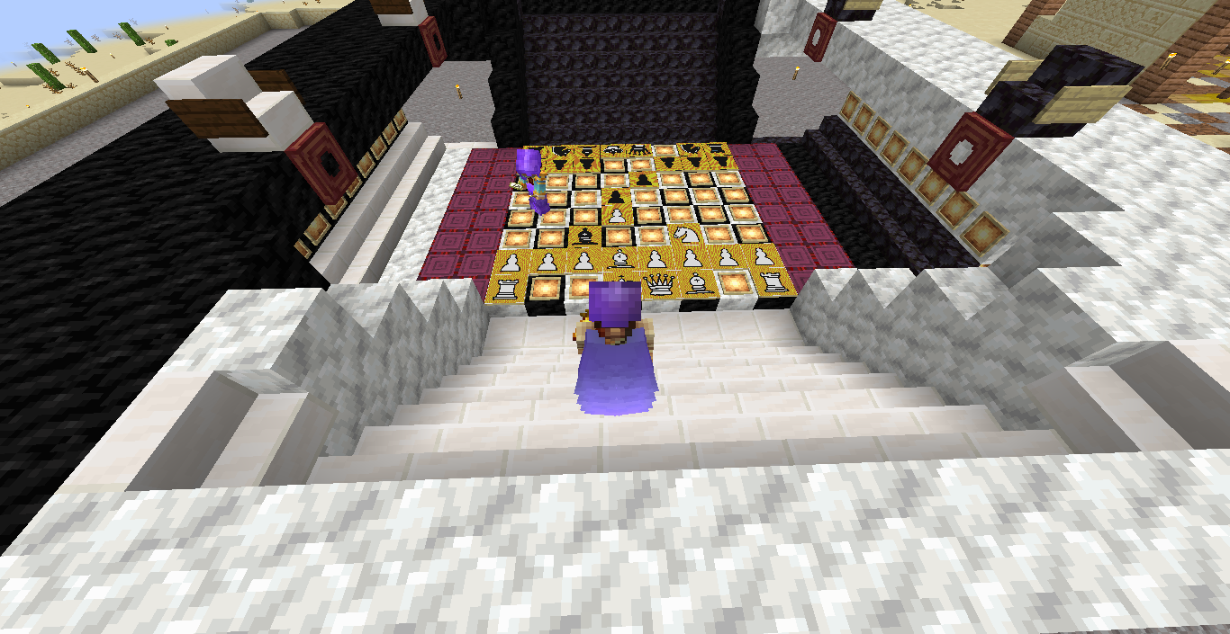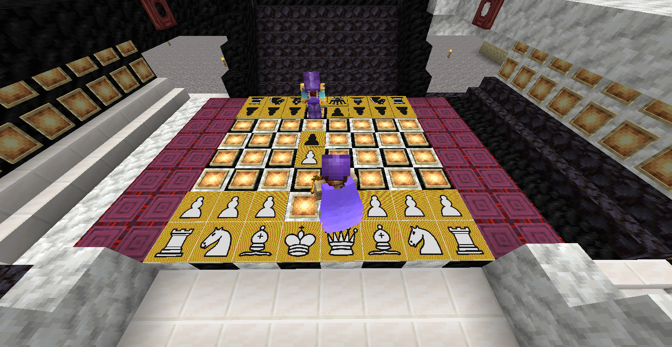 Город песков и старинных восточных построек Шариф приглашает всех желающих на открытие шахматного клуба имени Великого Султана Андру Мур-Арахуда! (Да дождёмся мы его возвращения!) Отныне в кубомирье доступна эта древняя восточная игра мудрейших для жителей Майнкрафт-Москов. Клуб оборудован новейшим шахматным полем для баталий с нанотехнологичным покрытием из светорамок. По краям установлены стенды для хранения убитых фигур противника, а для зрителей и болельщиков оборудован балкон с удобными креслами. Опытные гроссмейстеры и юные новички могут побороться за звание Шахматного Грандмастера Майнкрафт-Москов и просто приятно провести время в компании друзей. Устал копать, строить, афкашить - ходи конём! Клуб находится в городе Шарифе (песчаный портал на спауне), справа от выхода из портала. Желающим принять участие в игре достаточно сообщить мне в игре онлайн, либо здесь на сайте - я пропишу права в сабзоне клуба... Всем хорошей игры и ярких впечатлений! П.С. От грифа клуб защищён дубликатами фигур, но тем не менее правил сервера никто не отменял - прошу проявлять элементарную порядочность, не унося картины с собой после игры. Всем удачи!