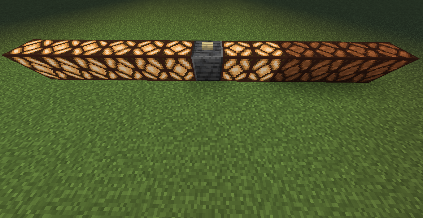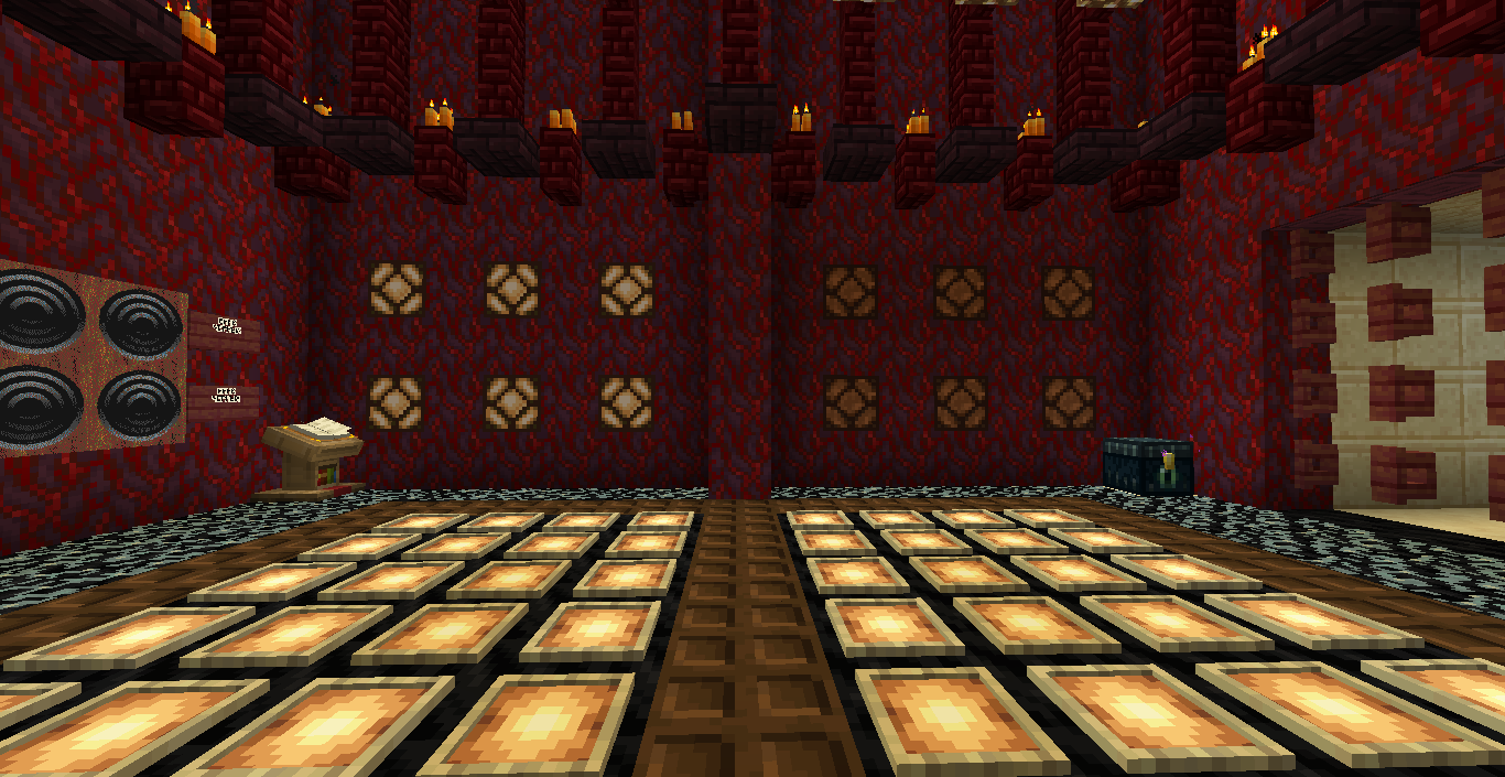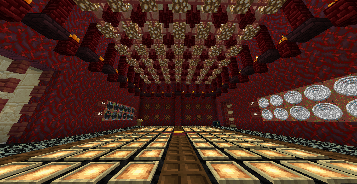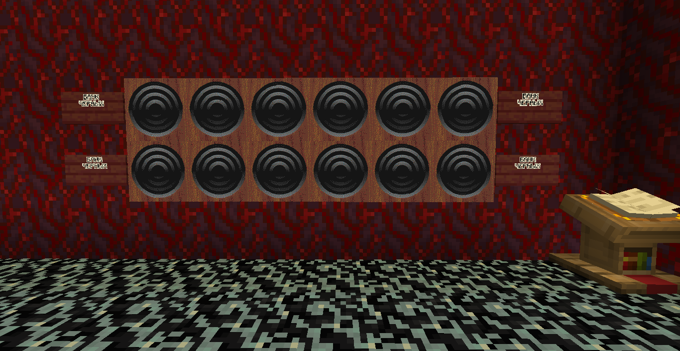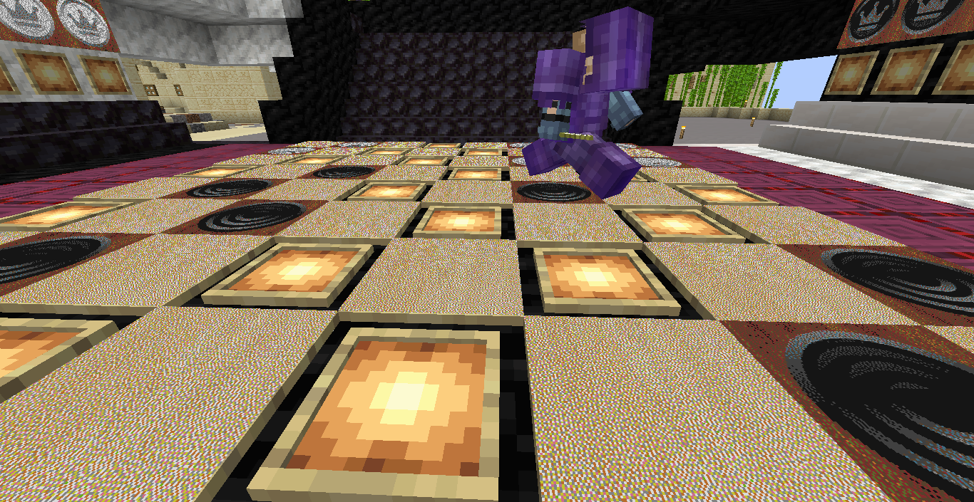Готово, город песков представляет новую мини-игру нарды! Правила игры в нарды. Игровые кости заменяет механизм рандомизации с выводом двух значений от 1 до 6 на табло. Механизм запускается при нажатии пластины в центре поля. Сигнал не стопорится - будьте внимательны.. Ход игрока состоит из двух перемещений шашек, согласно числовым значениям табло. Играть удобнее от третьего лица, переключив камеру кнопкой F5. При начале игры игроки определяют очередность хода и цвет своих шашек путем нажатия на пластину в центре поля. Игрок, получивший большее количество очков играет белыми и ходит первым. Последующие игры – первым ходит победитель прошлой игры. Каждый игрок играет 12-ю шашками своего цвета. Шашки расположены в банке на стене. Цель игры – провести все шашки с левого нижнего края против часовой стрелки до верхнего левого края и вывести с поля обратно в банк. На первом ходу игрок выставляет 2 шашки из банка, все последующие ходы не более 1 При невозможности выставить шашку из банка играются 2 шашки на поле. Пропускать ход нельзя, если есть возможность переместить шашки на поле, даже в ущерб своей позиции. Игрок может блокировать своими шашками не более 5 клеток подряд. Перекрывать 6 клеток и более подряд запрещено. Игровое поле ограничено 4 шашками в ряд (на голову) на одной клетке поля. Шашка, достигшая последней клетки, может быть возвращена из поля в банк в качестве 1 перемещения. Для этого необходимо, чтобы все шашки находились в последнем квадрате. Побеждает игрок, который первым провел все шашки через поле и вернул все шашки в банк. Для тех, кто играет впервые или уже забыл правила игры, по краям установлены кафедры с инструкцией. Хорошей игры! П.С. Для скептиков рандомайзера: как и в любых кубиках, одному из игроков будет везти чуть больше, другому чуть меньше в суммарном значении, но, тестируя в одиночке, убедился, что явного перекоса нет. Запись выпадающих очков прилагаю: нечетные - игроку 1, четные - игроку 2. 11 21 44 53 34 23 24 55 46 22 33 55 52 45 41 45 44 41 24 44 44 24 21 42 34 54 53 53 23 35 34 44 44 45 34 55 25 43 44 42 53 43 33 32 43 34 43 24 63 53 44 64 34 54 44 43 42 65 35 45 43 33 33 35 33 53 54 44 23 34 44 33 55 42 42 52 33 35 43 44 54 55 64 45 43 52 34 54 44 хода. 310 против 334 игрок 1 -24 24 25 35 44 54 33 33 52 33 23 54 34 23 33 35 54 43 44 63 55 34 52 53 23 33 12 54 55 52 15 53 25 54 23 44 41 42 21 44 55 43 11 23 23 41 45 46 45 35 34 32 42 52 24 43 24 44 52 25 14 24 45 24 43 34 34 64 33 53 23 35 34 42 35 55 52 35 44 23 23 45 23 33 43 21 44 51 44 44 хода. 316 против 293 игрок 1 +23 Так что решающее значение всё же будет иметь тактика и стратегия игры. И последнее: на сервере всё-таки возможны лаги, которые могут нарушить работу одного или обоих табло. Буду периодически проверять работу механизма, но если обнаружите явный сбой, когда например, табло долго не показывает значения больше одного или двух - зовите, пишите - все восстановим Жду всех в гости, всё так же песчаниковый портал со спауна. Зона мини игр справа от выхода из портала Шарифа. Шахматы, шашки, и, теперь, нарды.