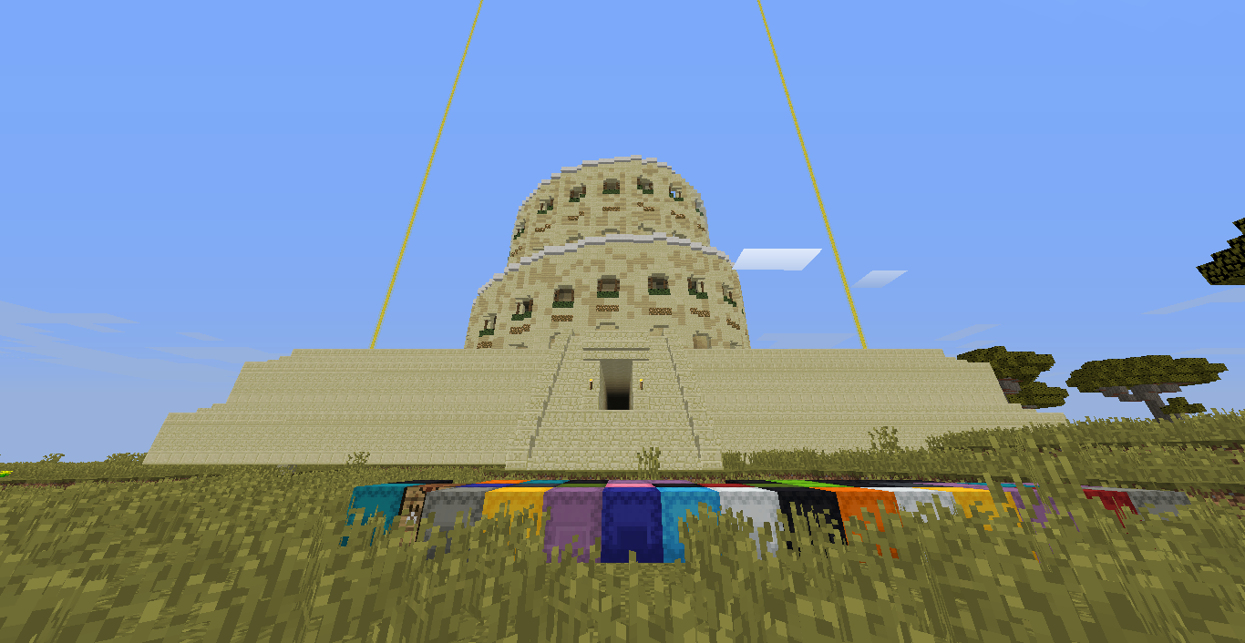 Закончено строительство пирамиды с лабиринтом (в дальнейшем там будет квест с ценным призом (скорее всего либо рандомный шмот с починкой (кроме лука и удочки), либо сама книга на починку)). Также 3-и сутки идет строительство Вавилонской башни p.s Лабиринт будет с ловушками, так что все вещи на себе сможете оставлять в специально установленный эндер-сундук