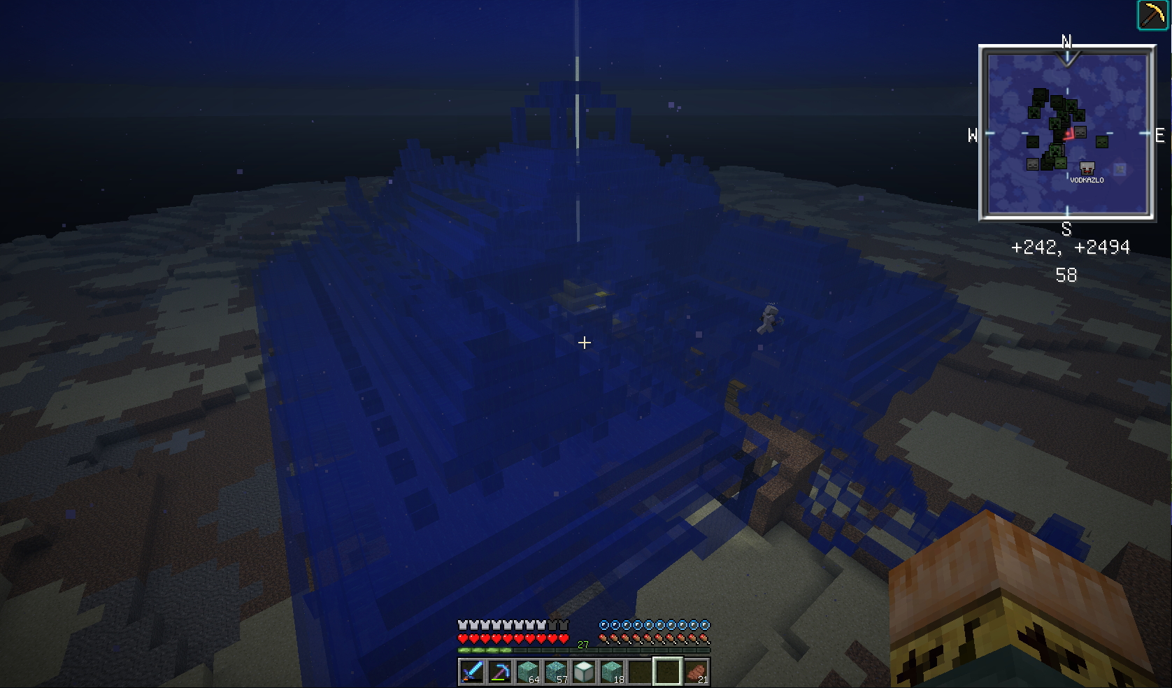 А мобы не деспавняться. Я вот потопал им морды бить. Вижу на карте их в куче толпа. Ну пришел в центр самый, а там пусто. Один крипер и зомб в долеке. Причём эти миражи не стоят на месте, а двигаются по карте за игроком. Они есть виртуально. Их не покалотиш, а качалка из за них не робит.