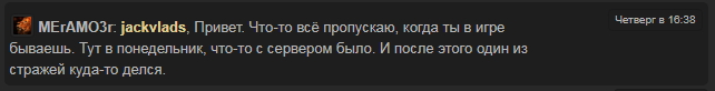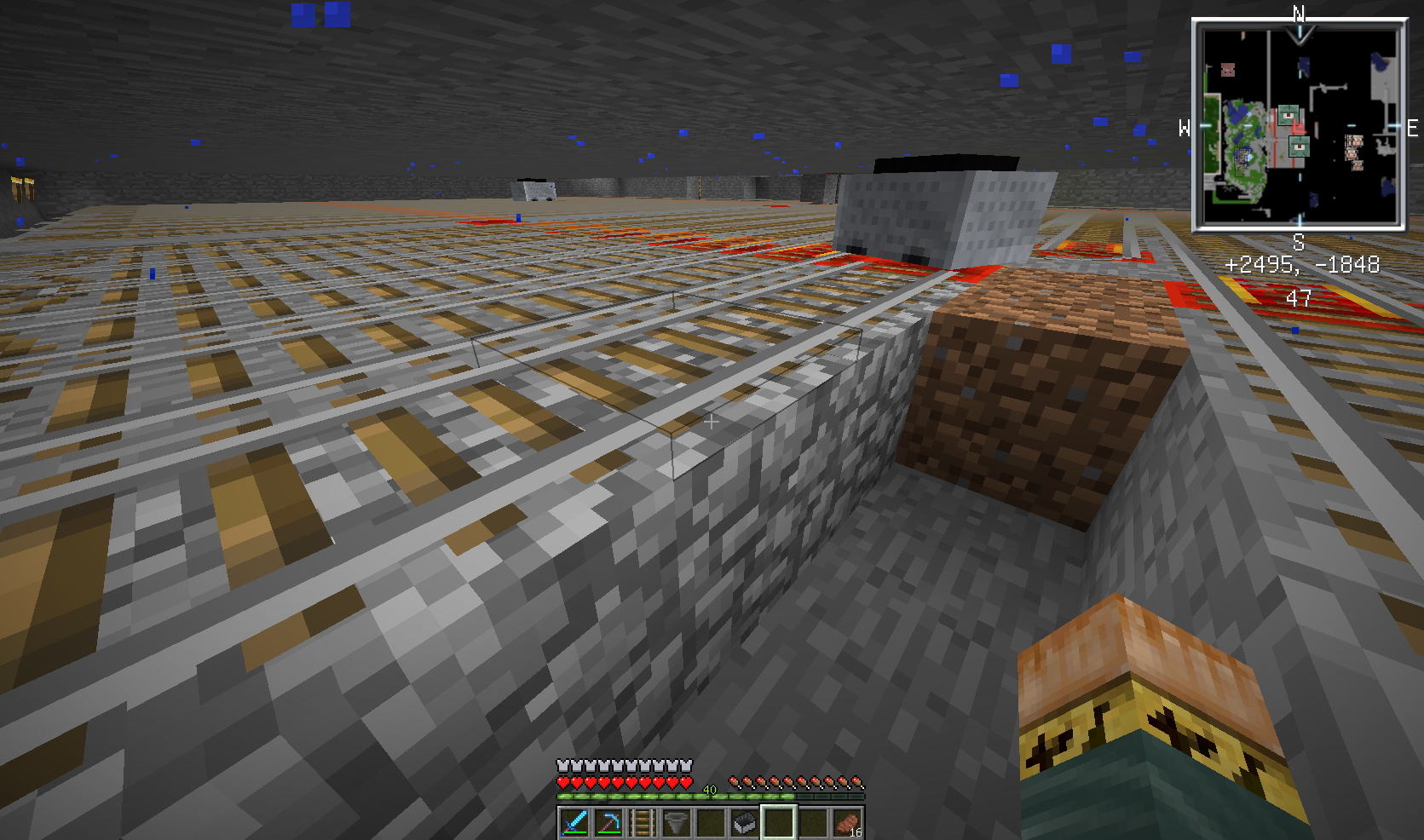 Вчера столкнулся с задачкой которую не сумел решить по началу . Ну всё по порядку . Паша как то написал в чате на сайте Ну стража нового заспавнил . Но ! Через 2 дня заглянул в ящик для лута мешков а там .. НИЧЕГО .. Это странно . Обычно хоть чуток есть мешков . Полез разбираться . Оказалось что исчез не только страж но и 2 вагонетки с воронками . Поставил новые . Но 1 вагонетка на половине пути просто тупо останавливалась . Разрыл пути . переставил рельсы . Но ничего не помогало . Оказалось что на нижний блок рельсы могу поставить а на них вагонетку никак ! Отмучался час так и не решив задачу хотя закралось сомнение что что то не пускает поставить вагонетку . Даже из игры выходил . Не помогло . Сегодня уже собрался писать в Тех поддержку . Заполз к вагонеткам а там увидал наконец что мешало вагонетки ехать ( видать после перезагрузки сервера вагонетку стало видно ) Оказалость что это одна из исчезнувших вагонеток ( сегодня я её увидел ! ) Ну вагонетку убрал . всё восстановил . Теперь всё стало на свои места ! Вот такие фокусы случаются )))