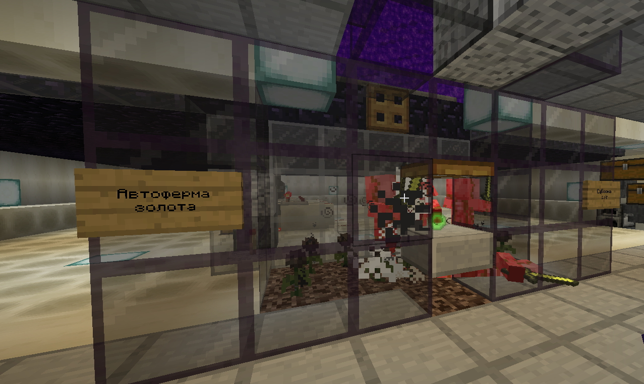 Воду сносим и строим коробку из Обсидиана и необходимые надстройки для фермы - Активатор ( Снеговик ) ну и систему