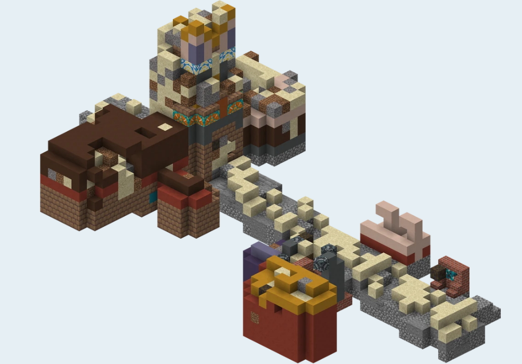 Немного о забытом совсем недавним обновлением игры . В именно об Археологии Археология — это игровая механика, которая позволяет игроку находить предметы, представляющие собой исторические артефакты, внутри подозрительных блоков песка и гравия. Есть немало мест на карте где можно покопаться ) В пустынных пирамидах . в пустынных колодцах . в руинах холодного океана. в руинах былых времён можно найти замечательные артефакты ! Вот именно о руинах и пойдёт речь. Погребённая структура, созданная утраченной культурой. Генерируется в тайге, заснеженной тайгае, многолетней тайгае (оба типа), многолетнем березняке и джунглиях. Найти руины не так то просто . Но если задаться этой целью то всё возможно На карте сервера можно увидеть вот такие непримечательные образования Непосредственно вживую это выглядит так А вот теперь берём кирку лопату и обязательно Кисточку и приступаем к кропотливой работе ! Есть такой блок - подозрительный гравий . Он немного отличается от гравия . Но отличить его можно Подозрительный гравий невозможно добыть ни чем . При любом перемещении или добычи он просто исчезает . Так вот в этом гравии и находятся артефакты которые добываются при помощи Кисточки А покопать придётся не мало ) Обьём копания на карте примерно такой ) Теперь о том что можно найти в руинах.Это только с одной структуры ! Ну вот как то так !