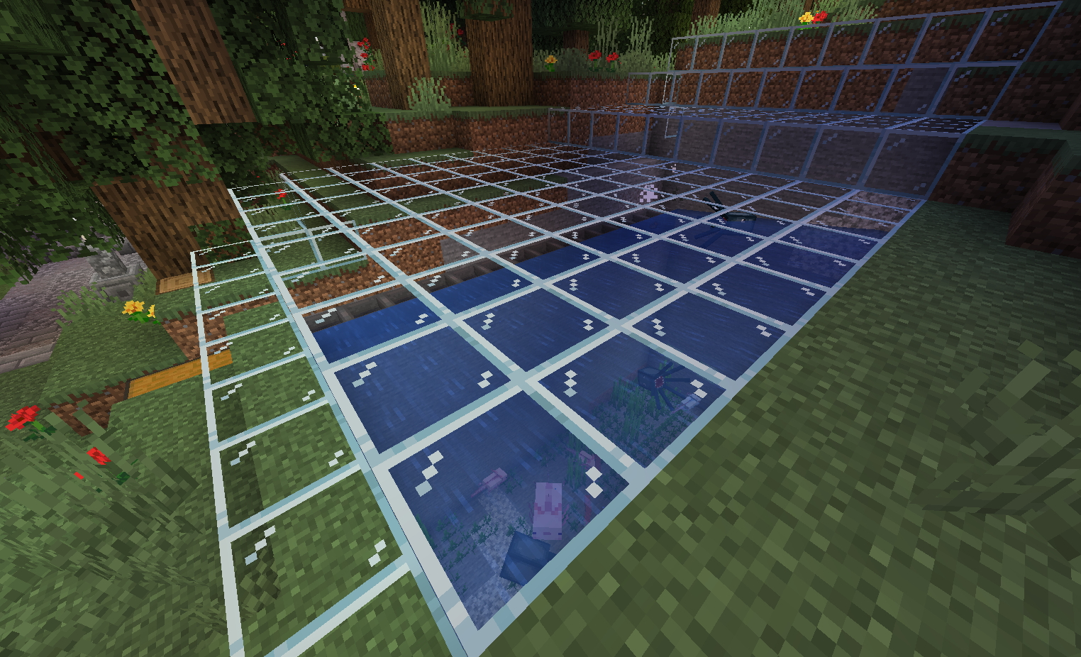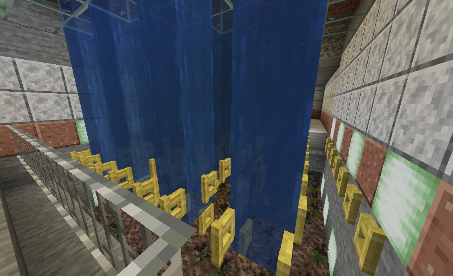 Экспериментировал с фермой рыбы ( интересовал главным образом лосось ) Перепробовал кучу разных ферм . Использование магмы и песка душ оказались плачевными - не хочет спавниться рыба. Были и более простые постройки типа этой результат нулевой Самой продуктивной фермой оказалась наипростейшей по конструкции - просто яма с аксолотлями Как всегда есть мааленькое но ! Спавнится лосось в 10 раз реже спрутов . С механикой игры не поспоришь )