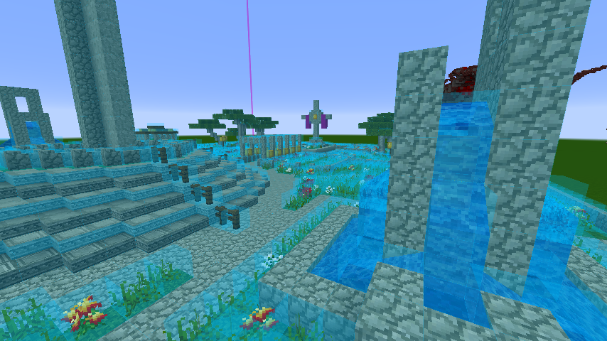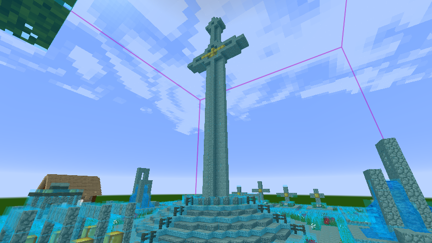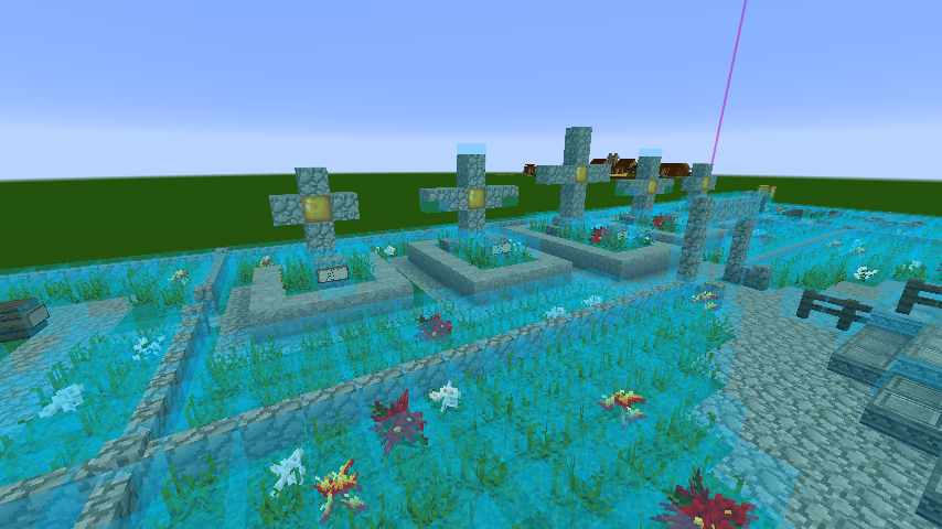 В этой игре очень разные символы можно использовать Когда я на старом сервере делал кладбище у спавна, я использовал мини-кресты из обычных и замшелых Cobblestone заборов. Выходит не кондово, как на скрине, и не совсем крест, что почти не позволяет ассоциировать с чем-то внеигровым. Плюс делается заборчик из стоунбриков и решёток, беседка из камней и кирпичей. Сейчас собственный дом закончу, и могу построить демо-кладбище где-нибудь. Или в сингле и заскриню. НО это подходит для миниатюрных кладбищ, в стиле моей деревни, а если на четыре чанка нужно могильник устроить, это мне ещё подумать надо