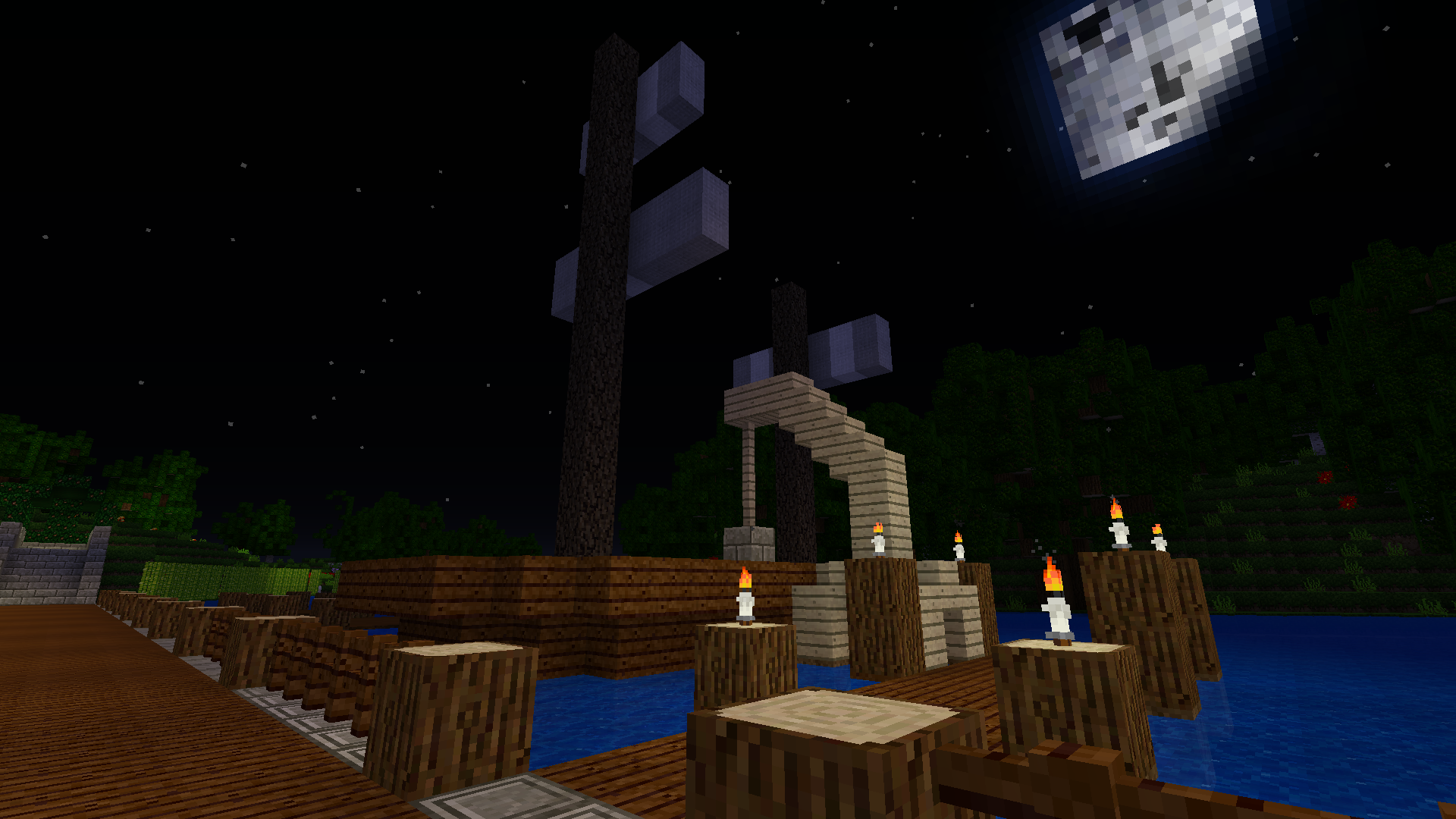 У нас там река, и каравеллы не канают, знаете ли... По поводу уровня воды - если думать не только о декоре, но и о том, что пристань люди могут пользовать, то надо делать так, чтобы из лодки было удобнее выпрыгивать. Желательно не в воду, а на пристань.