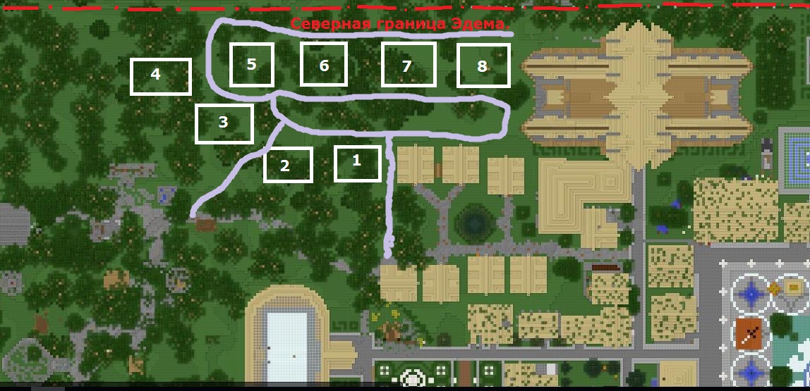 1. Мы заприватили прилегающие к Эдему территории, чтобы избежать прилегающей застройки "Клешнеруких" соседей (на всех я написал доносы и их отрегенили))), ну и для собственного расширения, ессно. 2. До "ЗаЭдемья" домики не доходят - они находятся севернее его. 3. При переходе на новую карту, размер территории будет рассчитываться прямопропорционально стоимости его переноса, и этот выступ увеличит приват "Паразитника" на несколько десятков блоков по всей северной границе, соответственно подняв ценник. 4. В приципе "Эконом-районы" можно не переносить - дешевле будет отстроить такие же на новой карте (это касается и многих наших объектов инфраструктуры).
