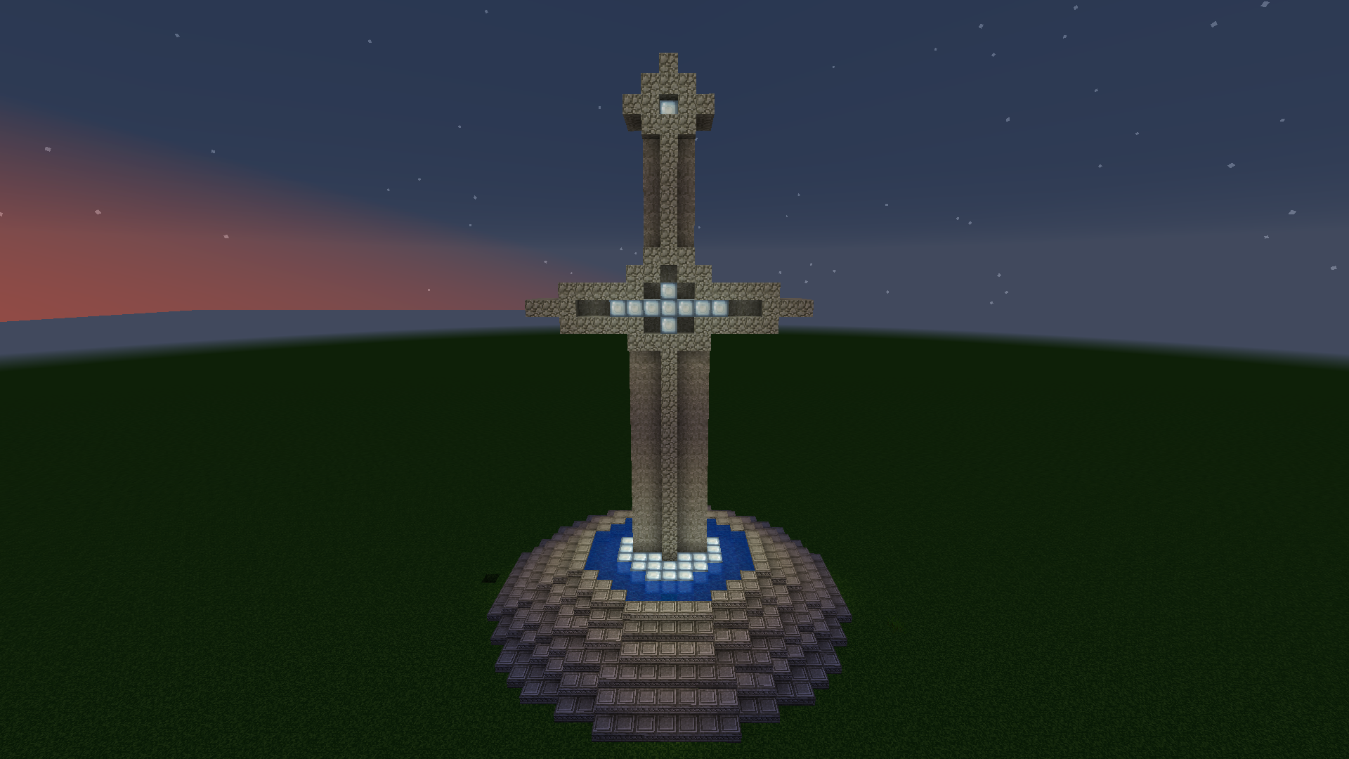 Без "Дракоши" никак? Торговые палатки можно перенести (если он не влезет)... Я - за более монументальную статую ! Можно уменьшить площадь основания "Дракоши", немого подвесив его в воздухе, ну ли подобрать что-нить ещё... Имхо, Меч - не айс...