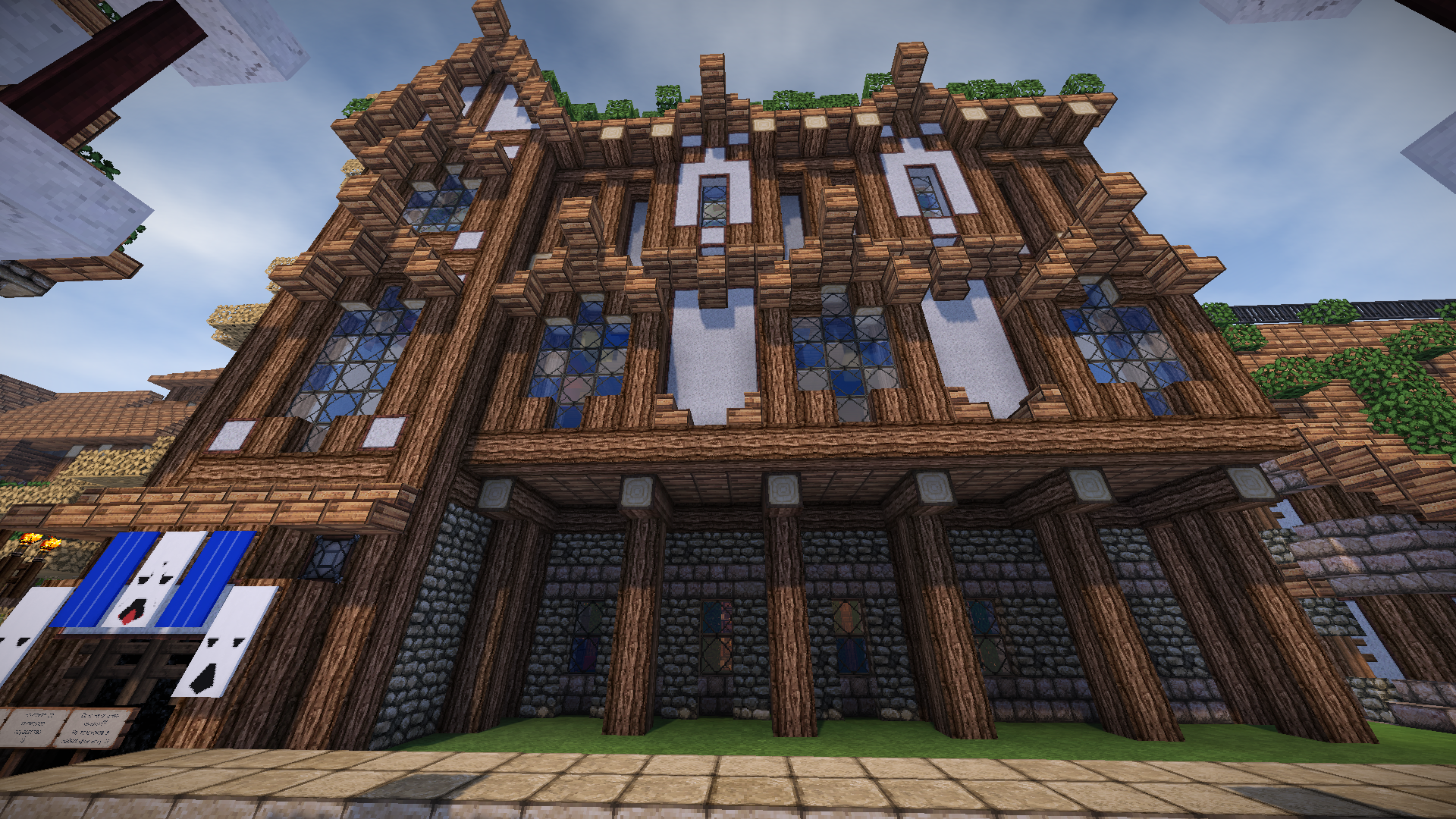 Правая часть двойного дома ? Габариты: площадь - 15 на 20 блоков (+/- 3 блока), содержать внутри предметы интерьера, люстры, столики для чтения(немножко), многочисленые книжные полки, ширина проходов между рядов книжных полок 2 блока, удобство перемещения внутри здания, и практичность содержания, легкость доступности для игроков.