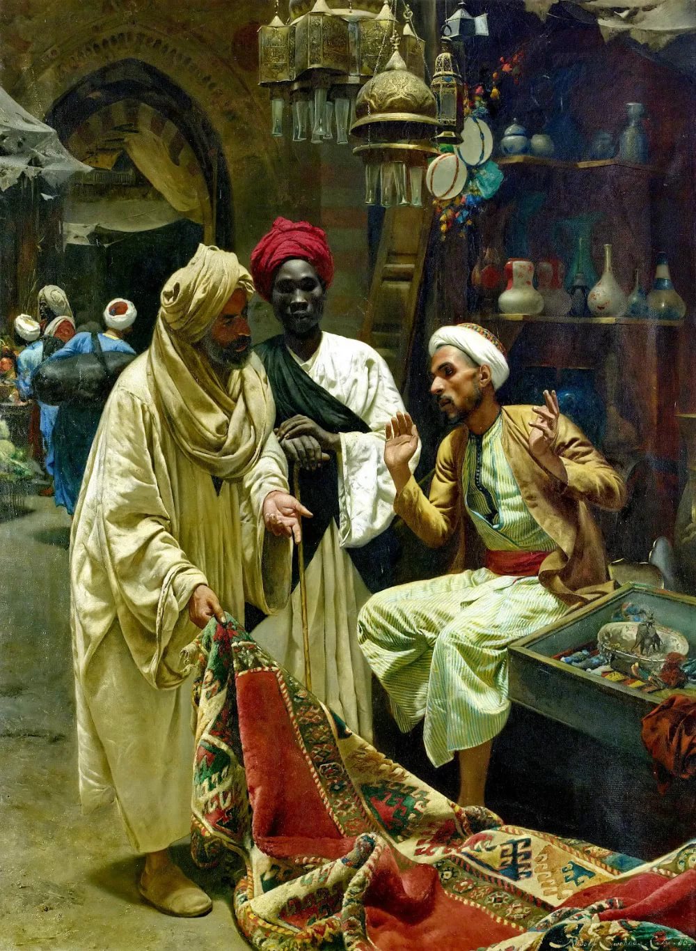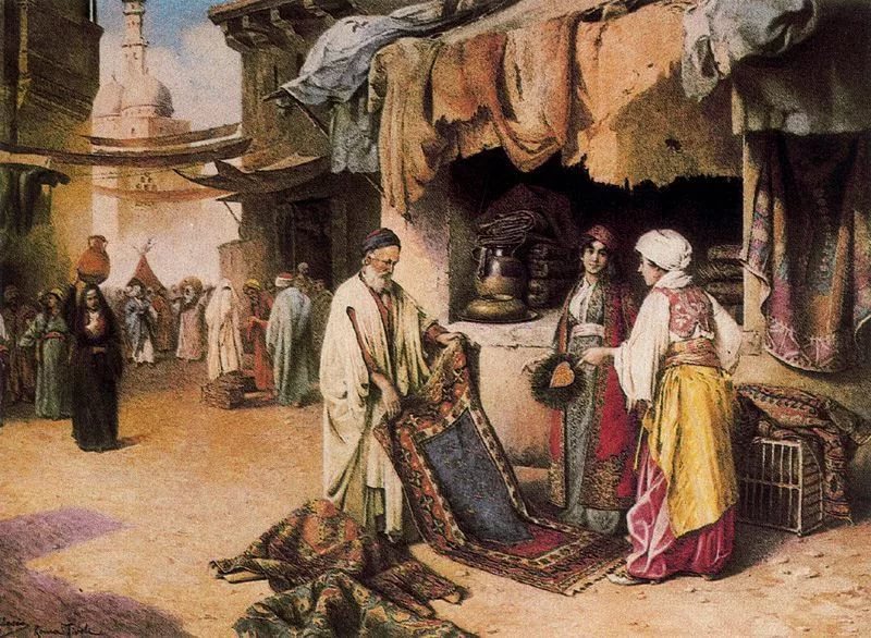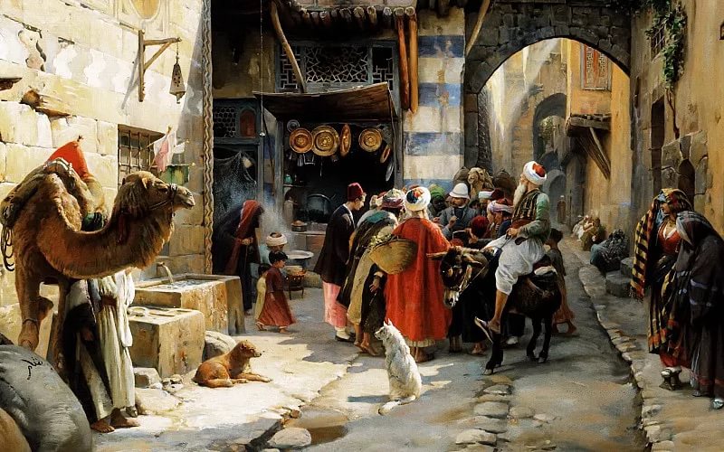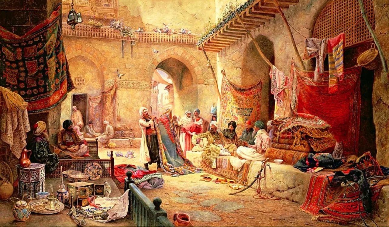 Интересный факт, что как правило, в отличии от европейских или русских городов, где центром города была ратуша, центральная площадь (в европейских городах) или крепость - детинец (Русь) в восточных городах центром становился караван - сарай или базар. Если в Европе люди ставили главной целью самоуправление, собирались на площадях, выбирали мэров, а на Руси главой был князь с дружиной, а города были военными центрами княжества, главной задачей которого была - контроль земель. На Востоке главный "двигатель прогресса" представлял из себя торговлю. Из за сложности создания для себя всех необходимых потребностей, из за географических условий, арабы, персы и прочие жители Востока просто обязаны были торговать. Порой, сперва возникал базар на караванных путях ( пересечении караванных путей) и только потом вокруг возводился город. Даже религиозный центр мусульман - Мекка, раньше, в первую очередь, была наикрупнейшим торговым центром. Даже пророк Мухаммед изначально занимался торговлей и водил караваны. Торговля составляла обязательную часть любого восточного человека.