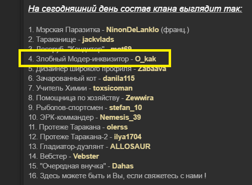 mot69, я повторял и повторяю, я не "изгонял" TITLE из евентеров. Не знаю от куда вас эта информация, может от него. Если от него, то он нагло лжёт. На самом деле он сам попросил снять его с этой должности! Почему, это другой вопрос и отвечать на него должен он сам.