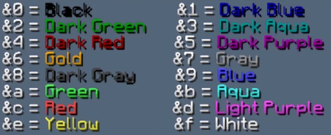 Примечание! Цвета &9 и &c зарезервирован за администрацией проекта и не доступны для использования.